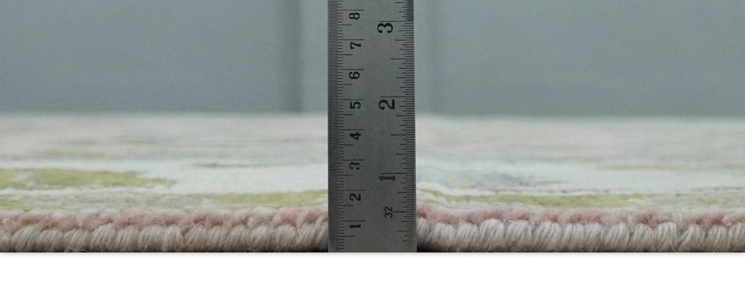 This specific rug is made in India, in the city of Bhadohi. Bhadohi is one of the biggest rug manufacturing cities. Carpet weaving in the region dates back to the 16th century during the reign of Akbar. The skilled artisans of Bhadohi have been carrying the tradition of rug-making for centuries.