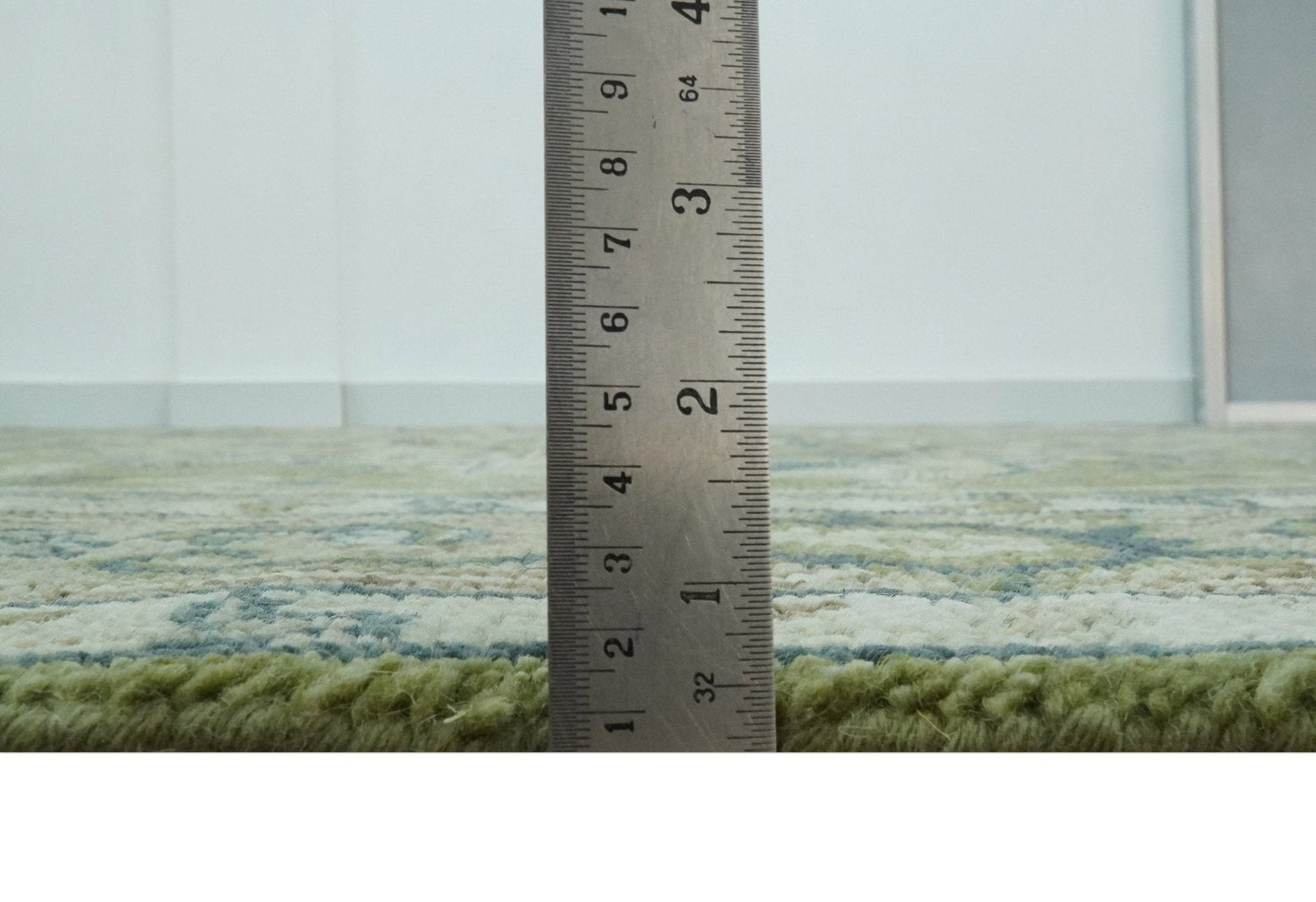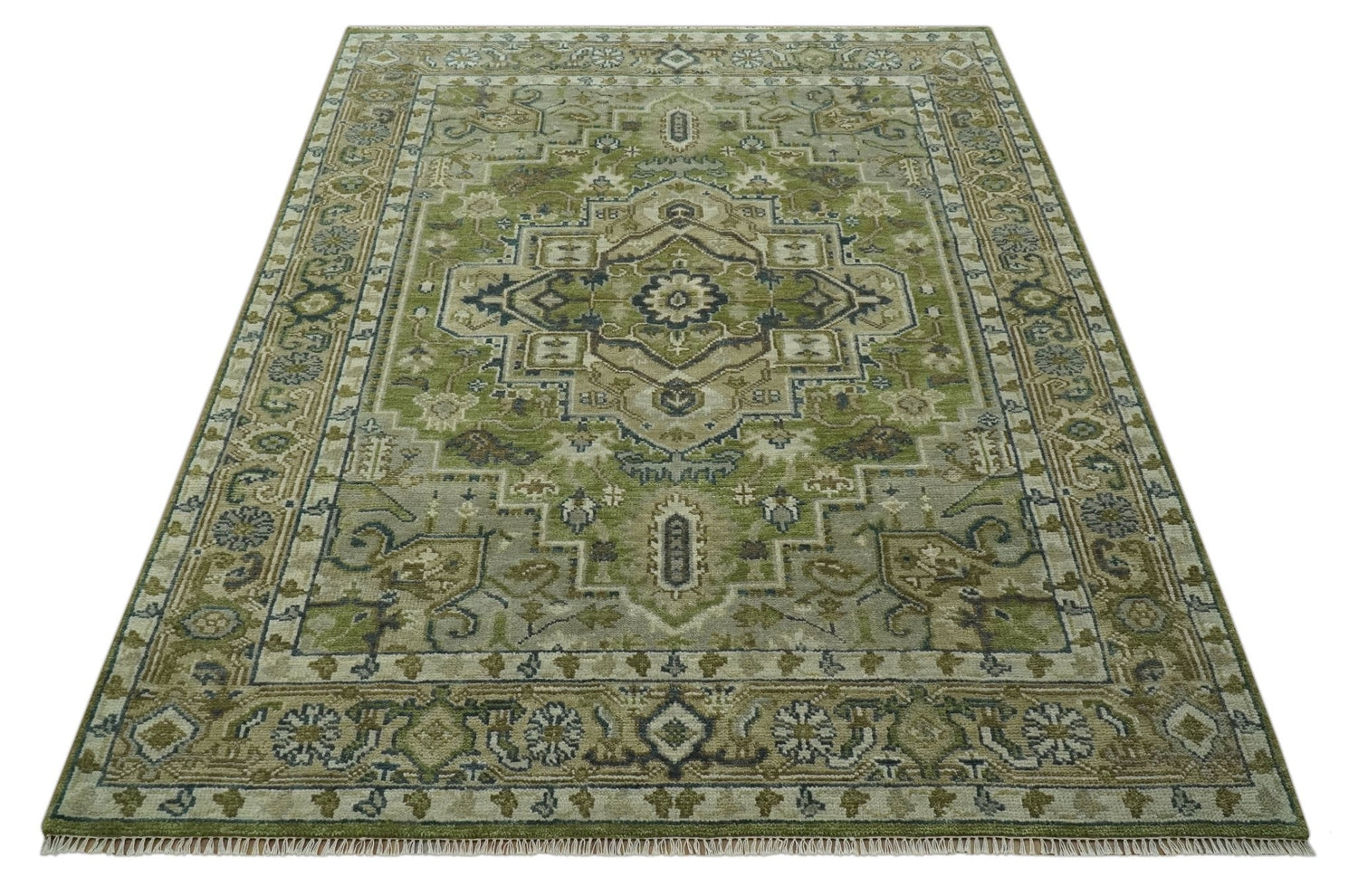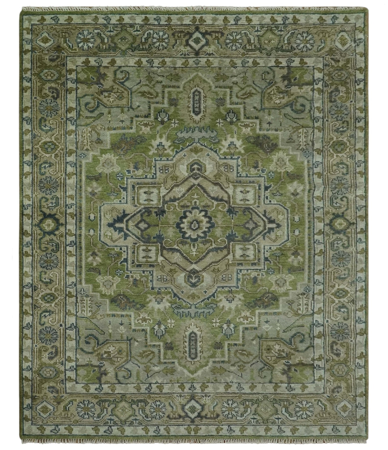 Custom Made Hand Knotted Traditional Green, Silver and Charcoal wool area rug