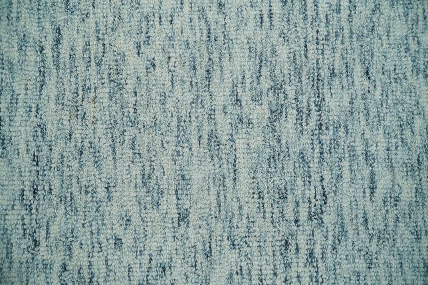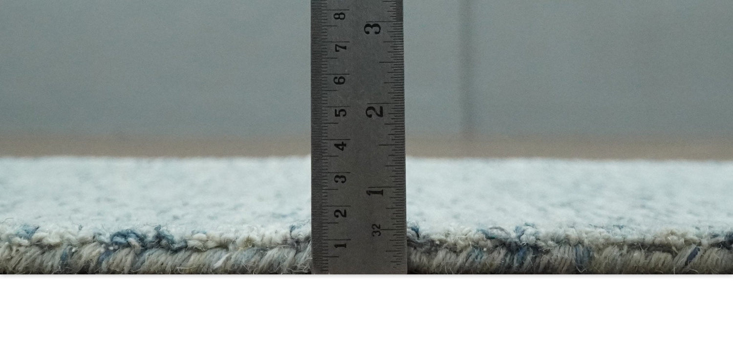 Custom Made Ivory and Blue Abstract Hand Tufted Natural Wool Area Rug