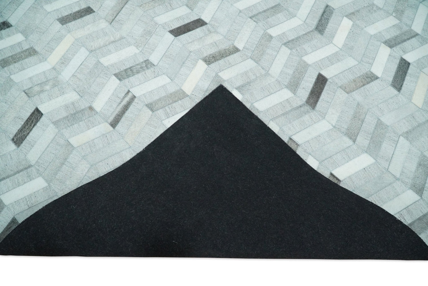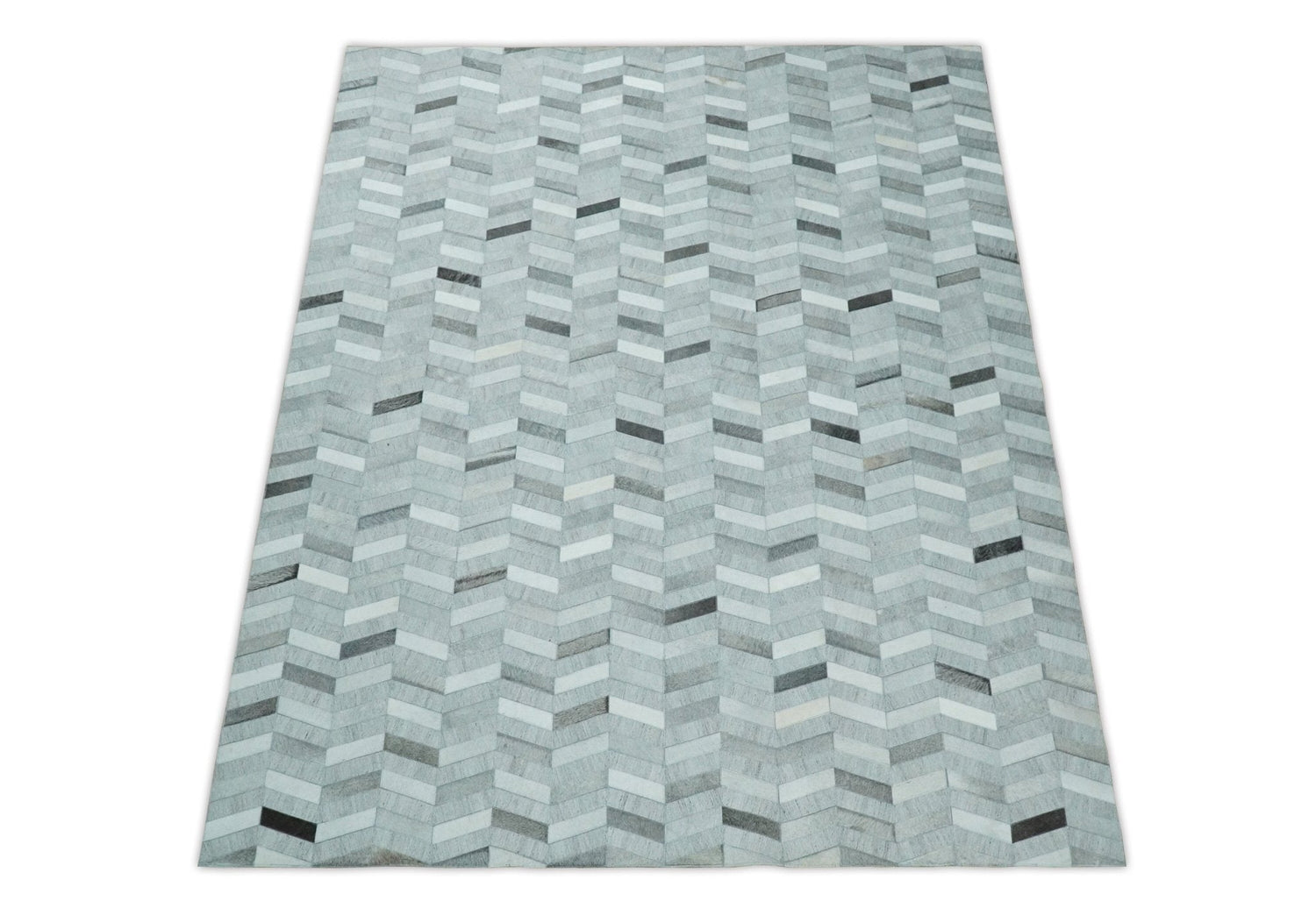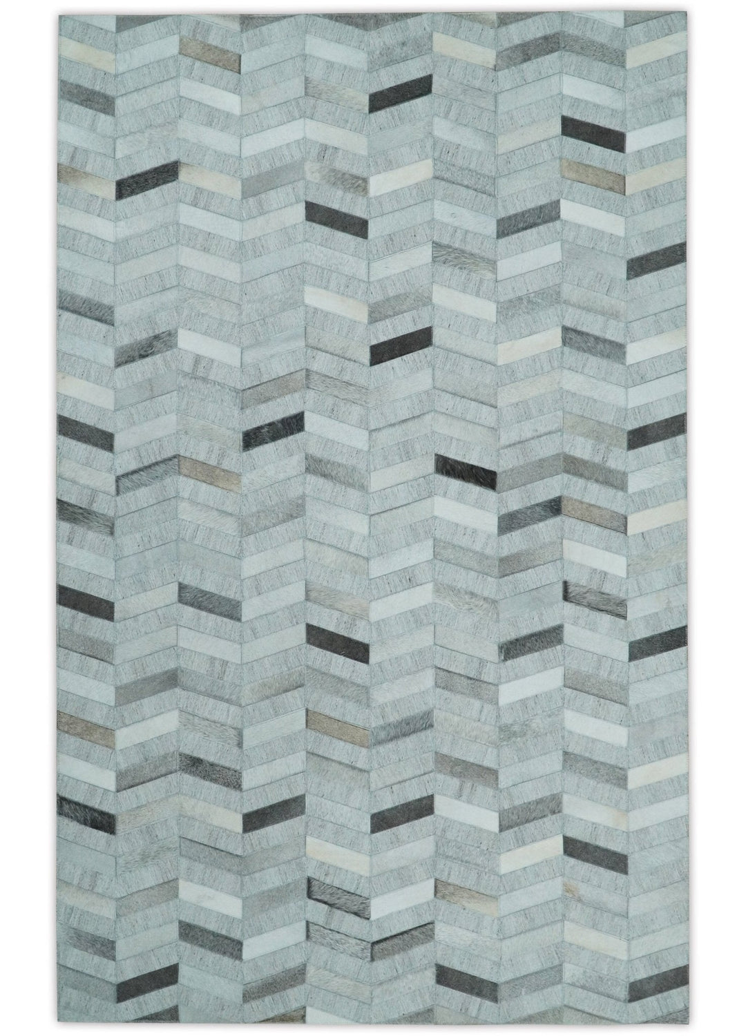 Custom Made Ivory and Gray Leather Rug | Hairon Genuine Leather, Cowhide rug, Chevron Geometric Rug