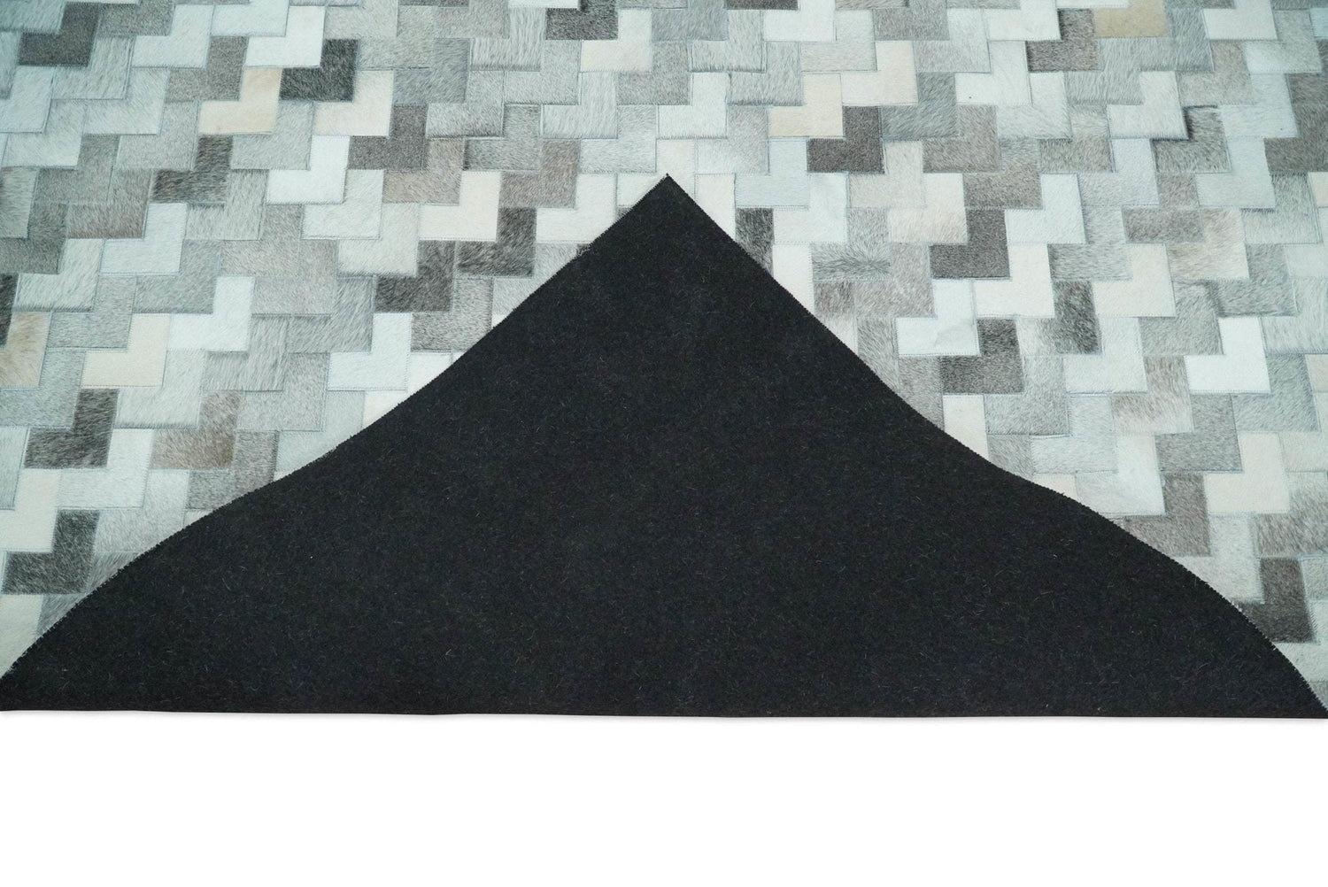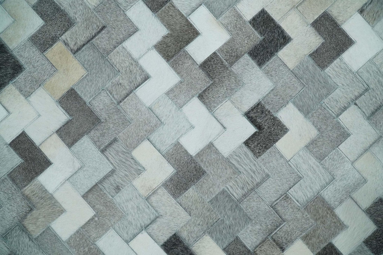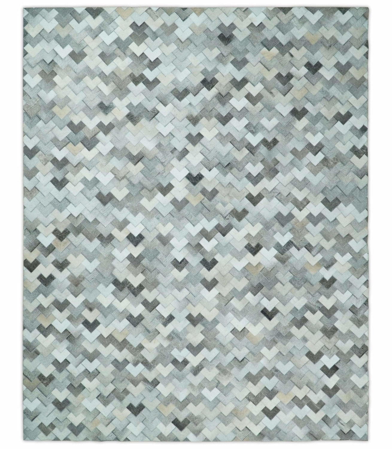 Custom Made Ivory and Gray Leather Rug | Hairon Genuine Leather, Cowhide rug, Chevron Tile Geometric Rug