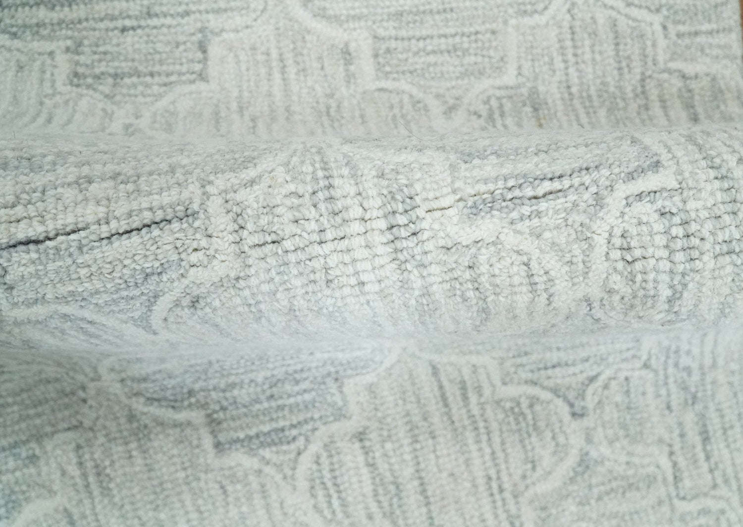 Custom Made Ivory and Silver Modern Geometric Hand Tufted Natural Wool Area Rug