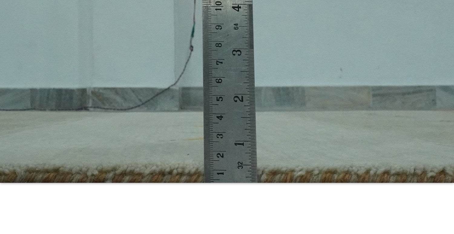 Custom Made Ivory, Beige and Rust Geometrical stripes Design Hand loom Wool Area Rug
