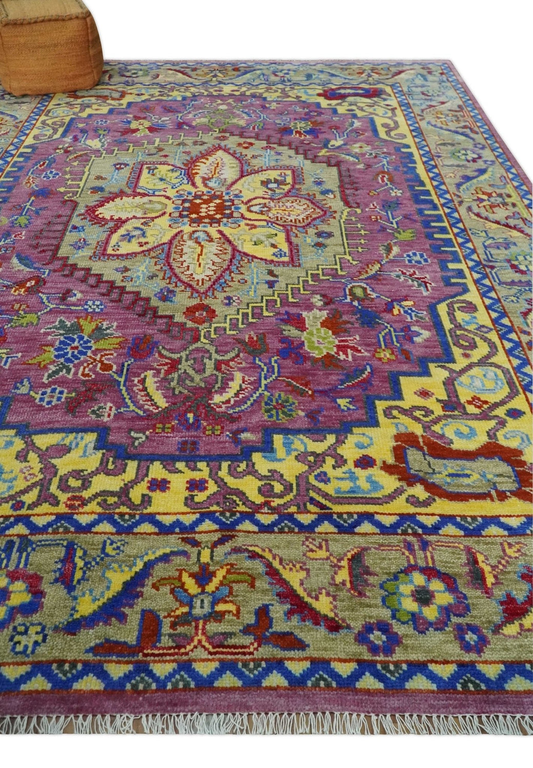 Custom Made Light Green and Purple Medallion Traditional Hand Knotted Wool Area Rug