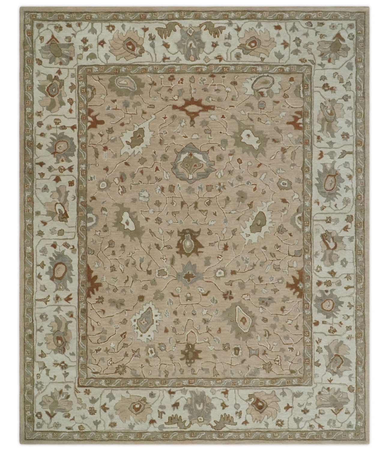 Custom Made Oushak Design Tufted Peach, Ivory and Olive Traditional Rug