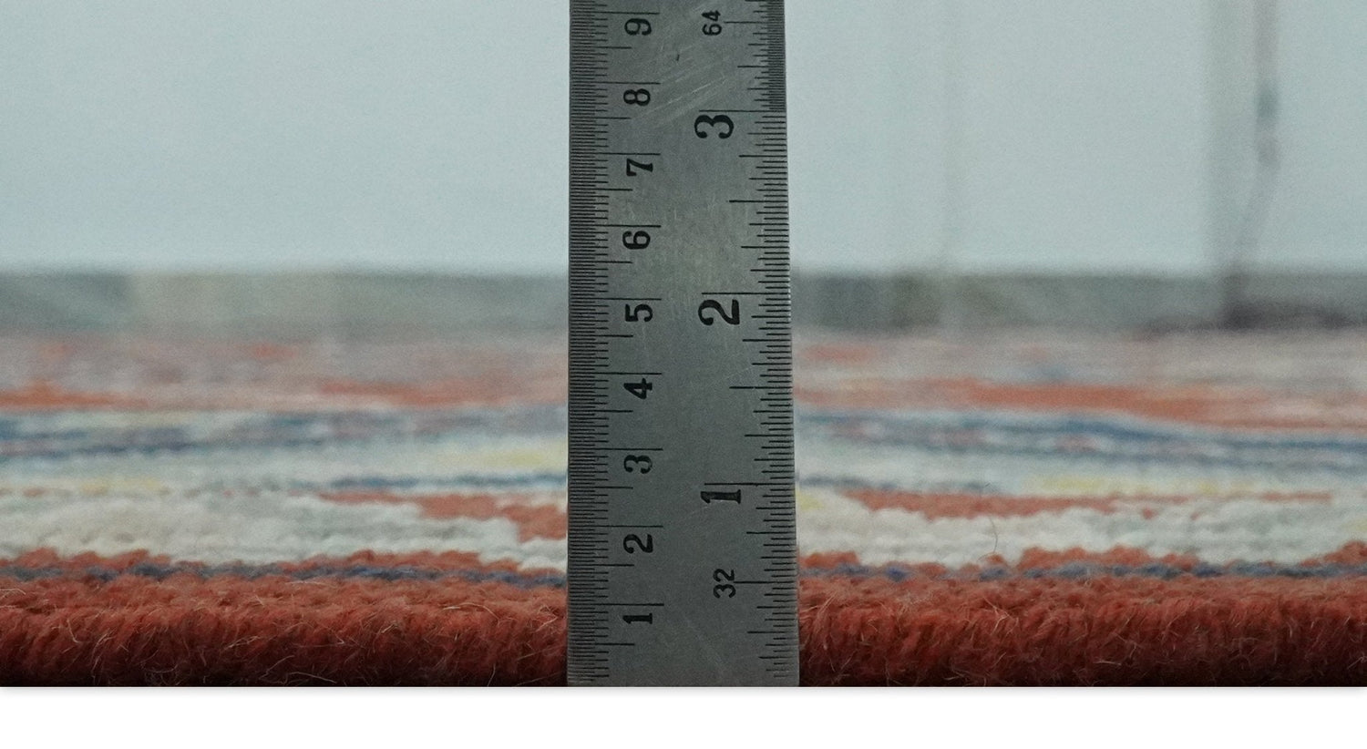 This specific rug is made in India, in the city of Bhadohi. Bhadohi is one of the biggest rug manufacturing cities. Carpet weaving in the region dates back to the 16th century during the reign of Akbar. The skilled artisans of Bhadohi have been carrying the tradition of rug-making for centuries.