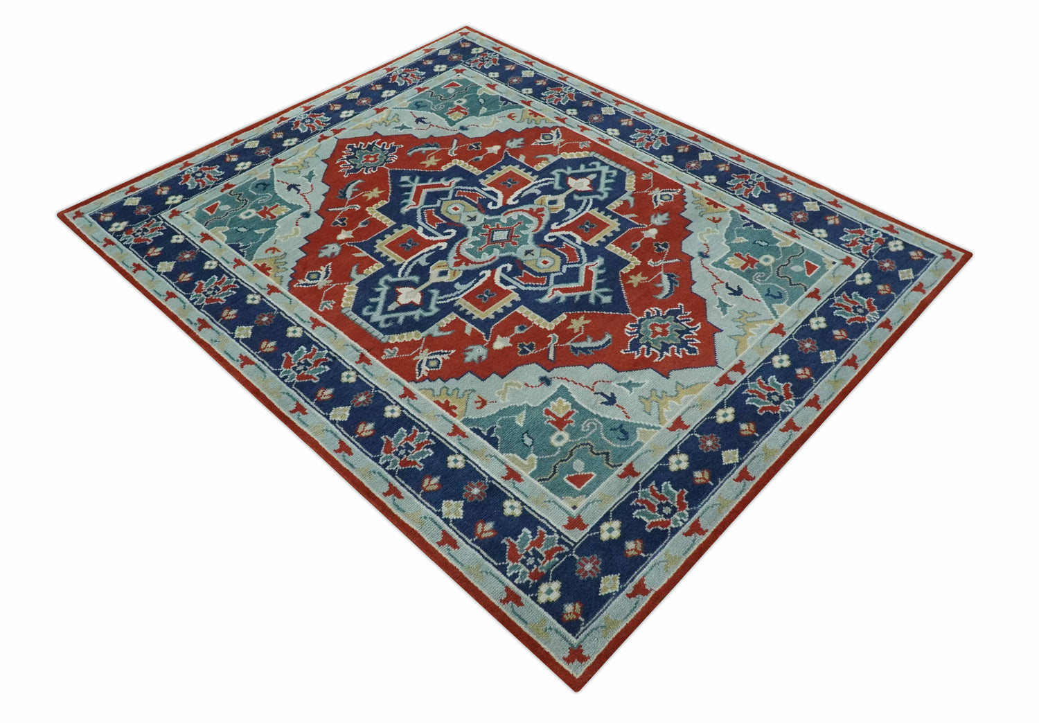 Custom Made Rust, Blue and Silver hand knotted Traditional Heriz wool area rug