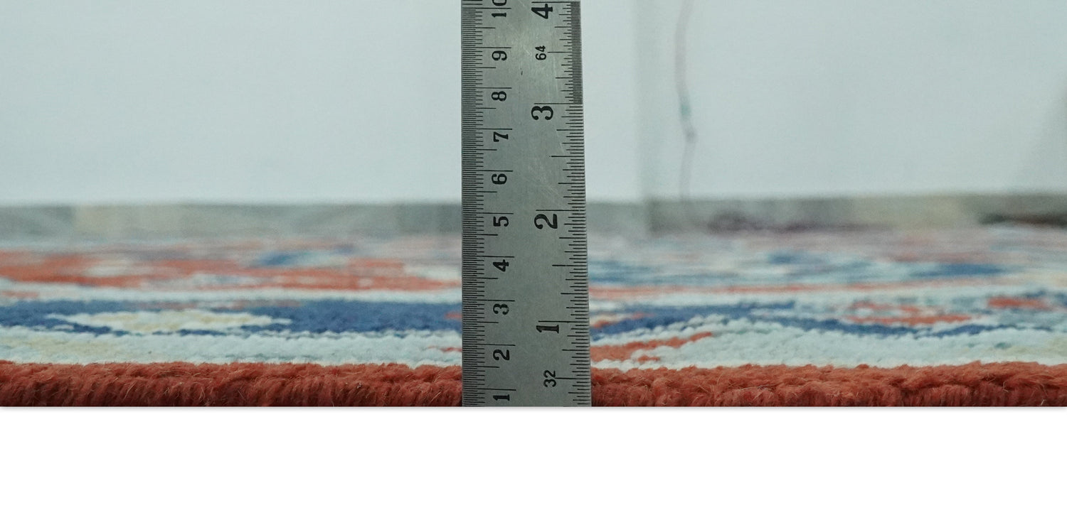 Expertly crafted in a traditional Heriz style, this custom-made wool area rug features a rich blend of rust, blue, and silver tones for a unique and luxurious look. Each rug is meticulously handcrafted to add warmth and sophistication to any room. Made from high-quality wool for durability and softness underfoot.
