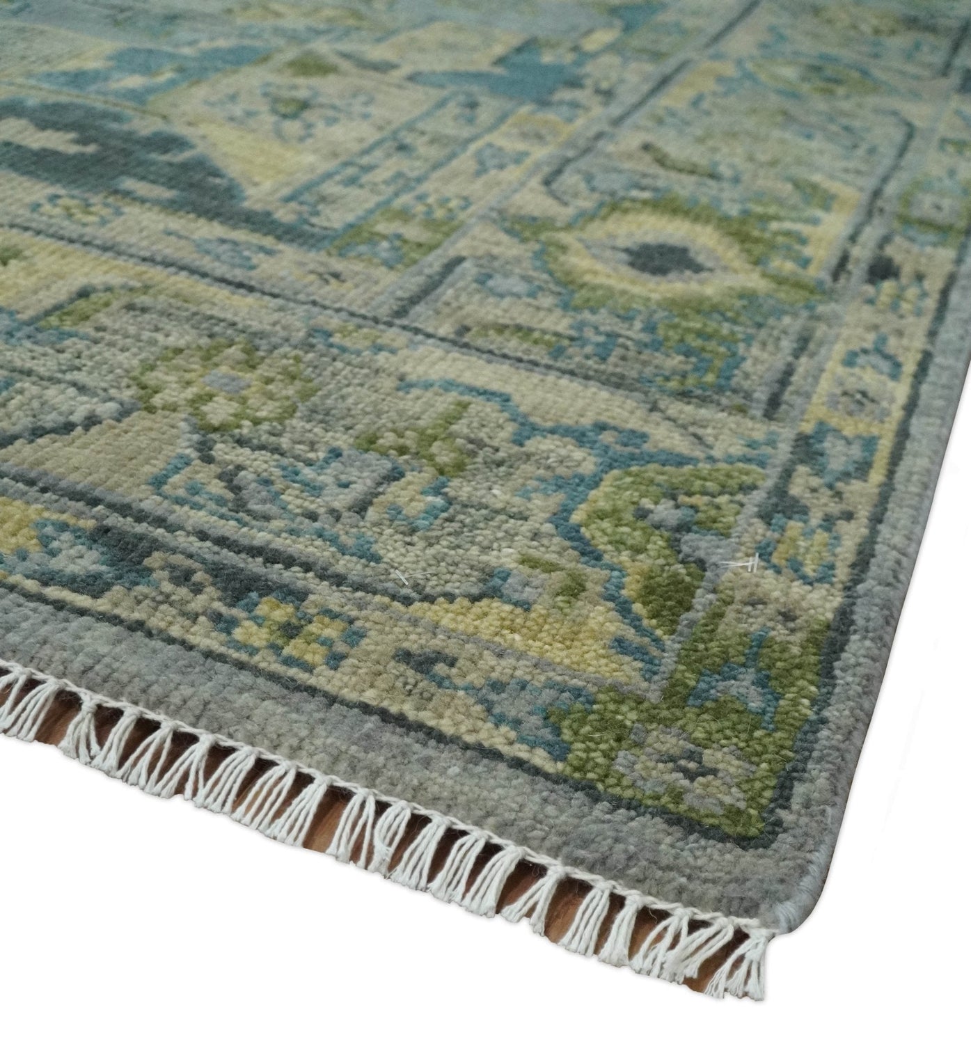 Custom Made Silver, Moss Green and Blue Heriz Traditional Wool Rug