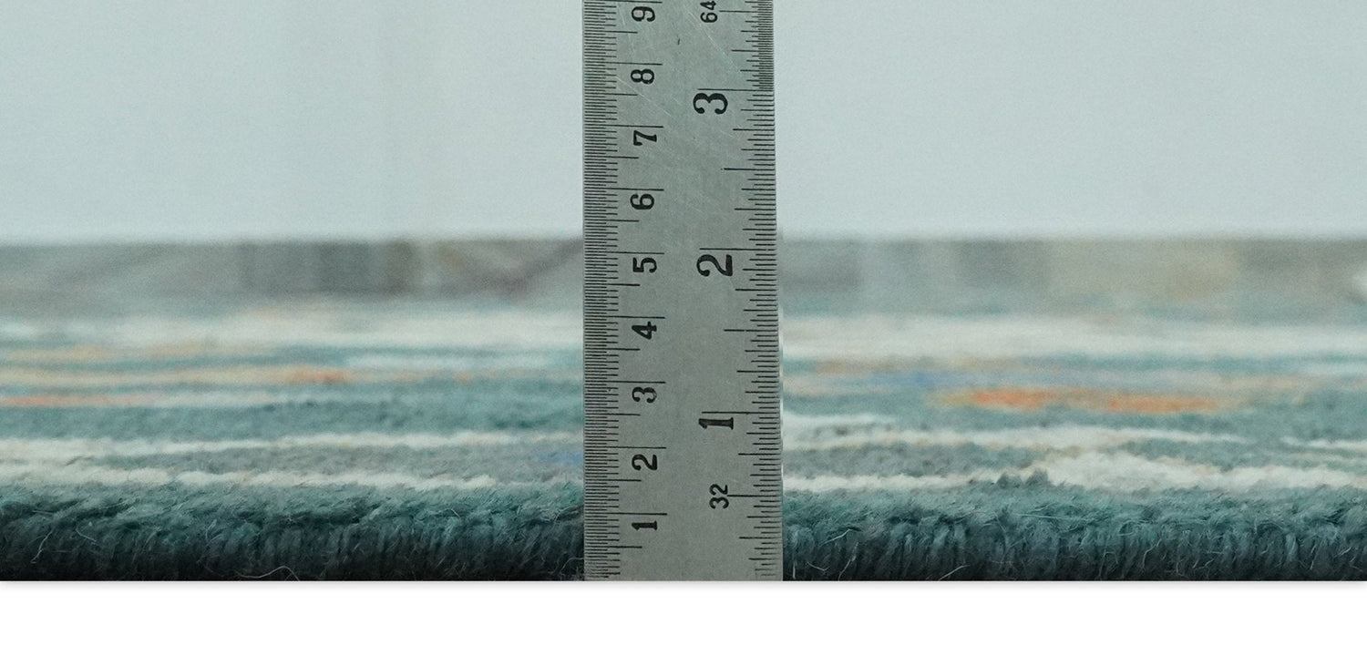 Expertly hand-knotted with traditional Mamluk design, this custom-made teal and ivory wool rug adds a touch of elegance to any room. Made from high-quality wool, it is both durable and luxurious, offering warmth and comfort for years to come. Elevate your space with this timeless and unique piece.