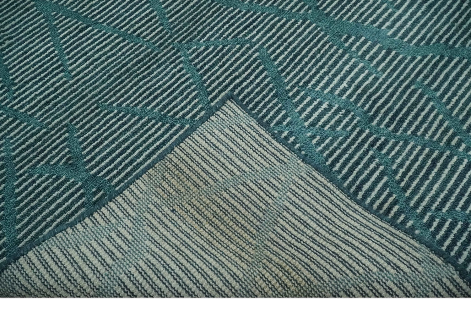 Custom Made Teal and Ivory Modern Stripes Design Hand Knotted wool Area Rug