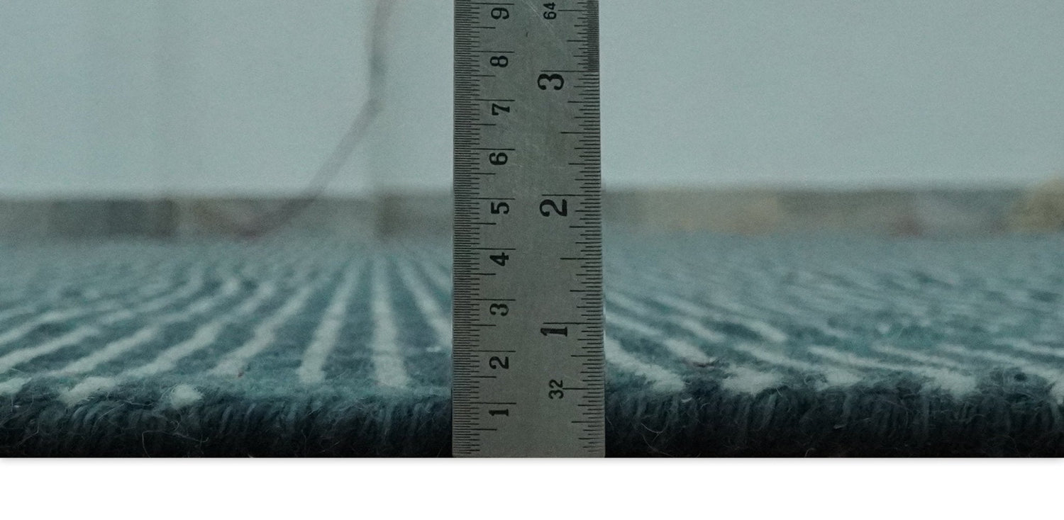 Expertly crafted with wool, this Custom Made Teal and Ivory Modern Stripes Design Hand Knotted Area Rug is the perfect addition to any space. With its unique and contemporary design, this rug adds both style and warmth to your home. Hand-knotted for durability and made-to-order, it's a luxurious and practical choice.