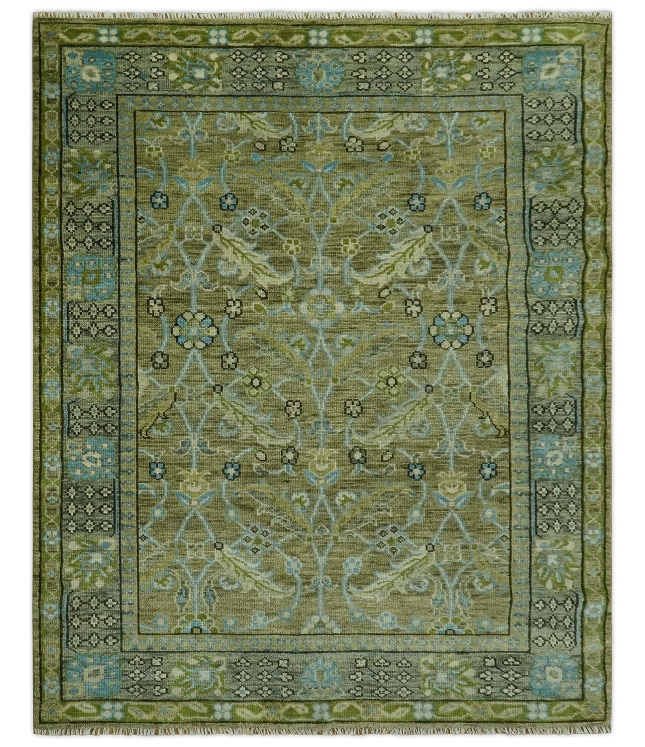 Custom Made Traditional Floral Green and Aqua Hand Knotted wool area rug