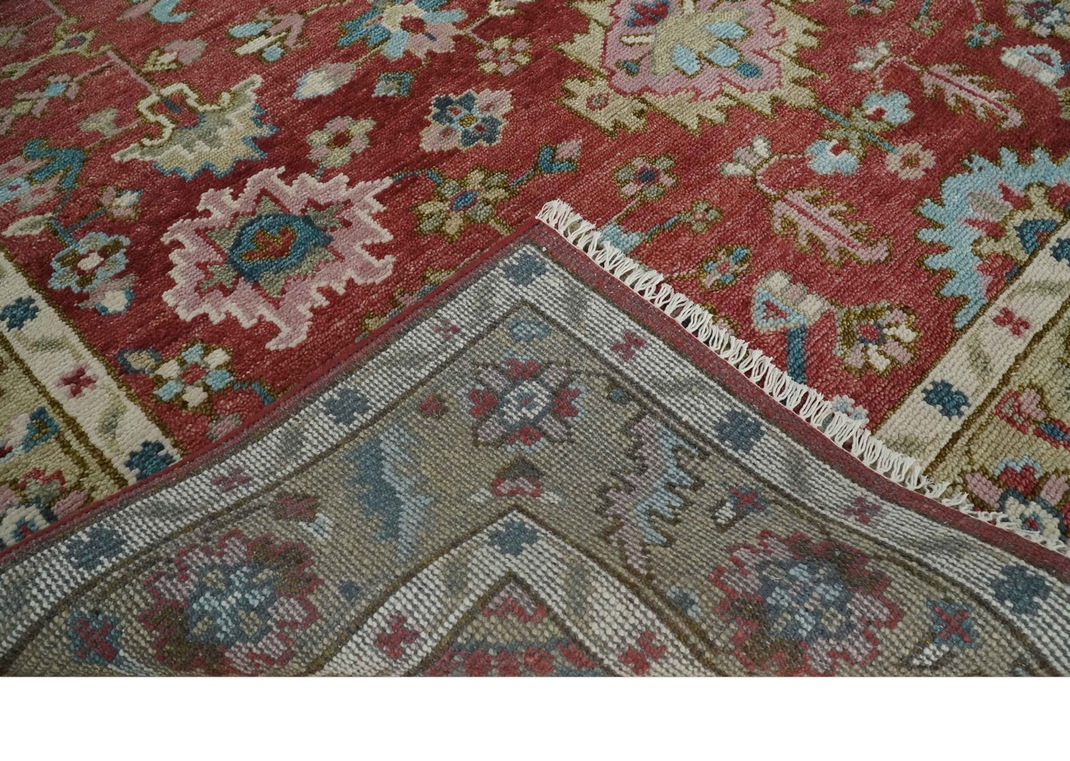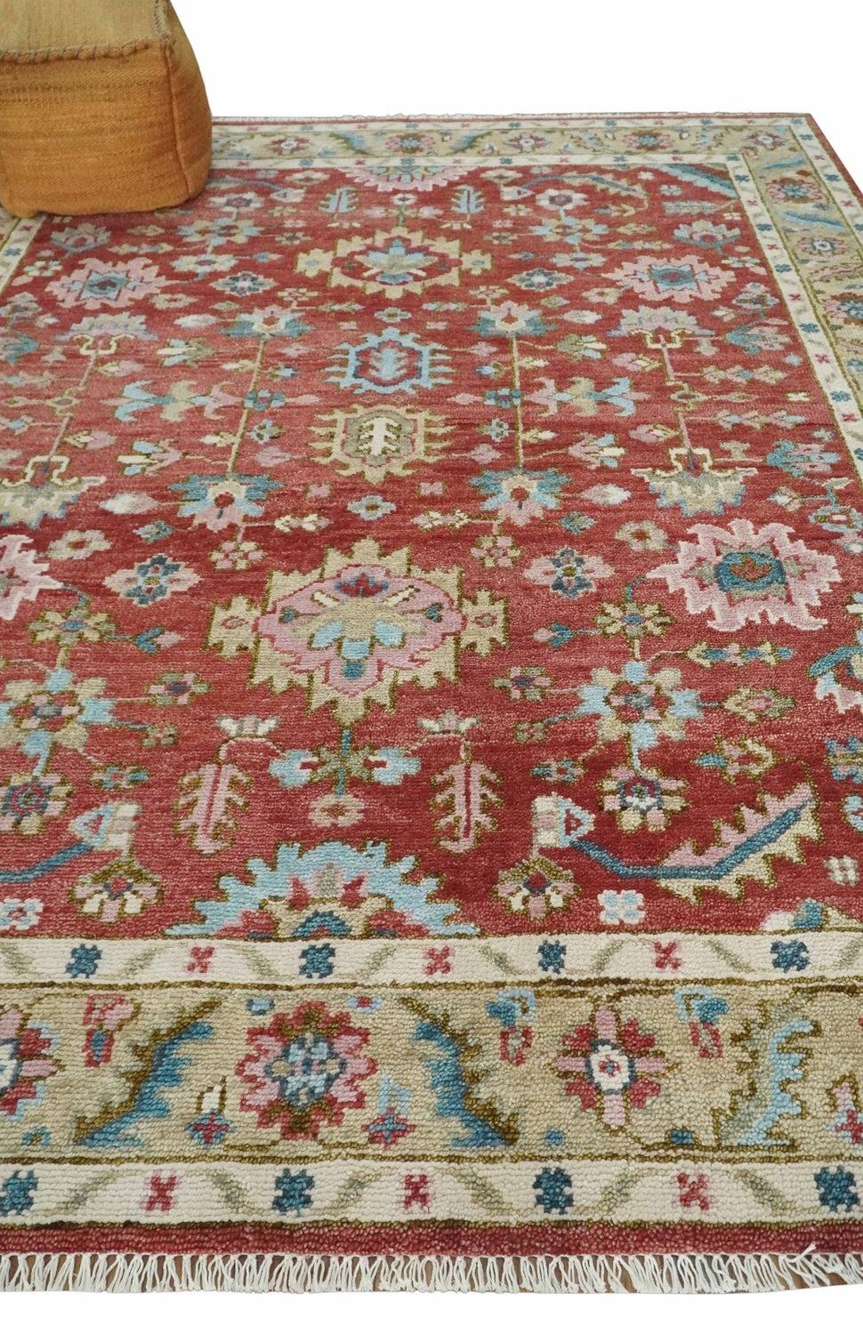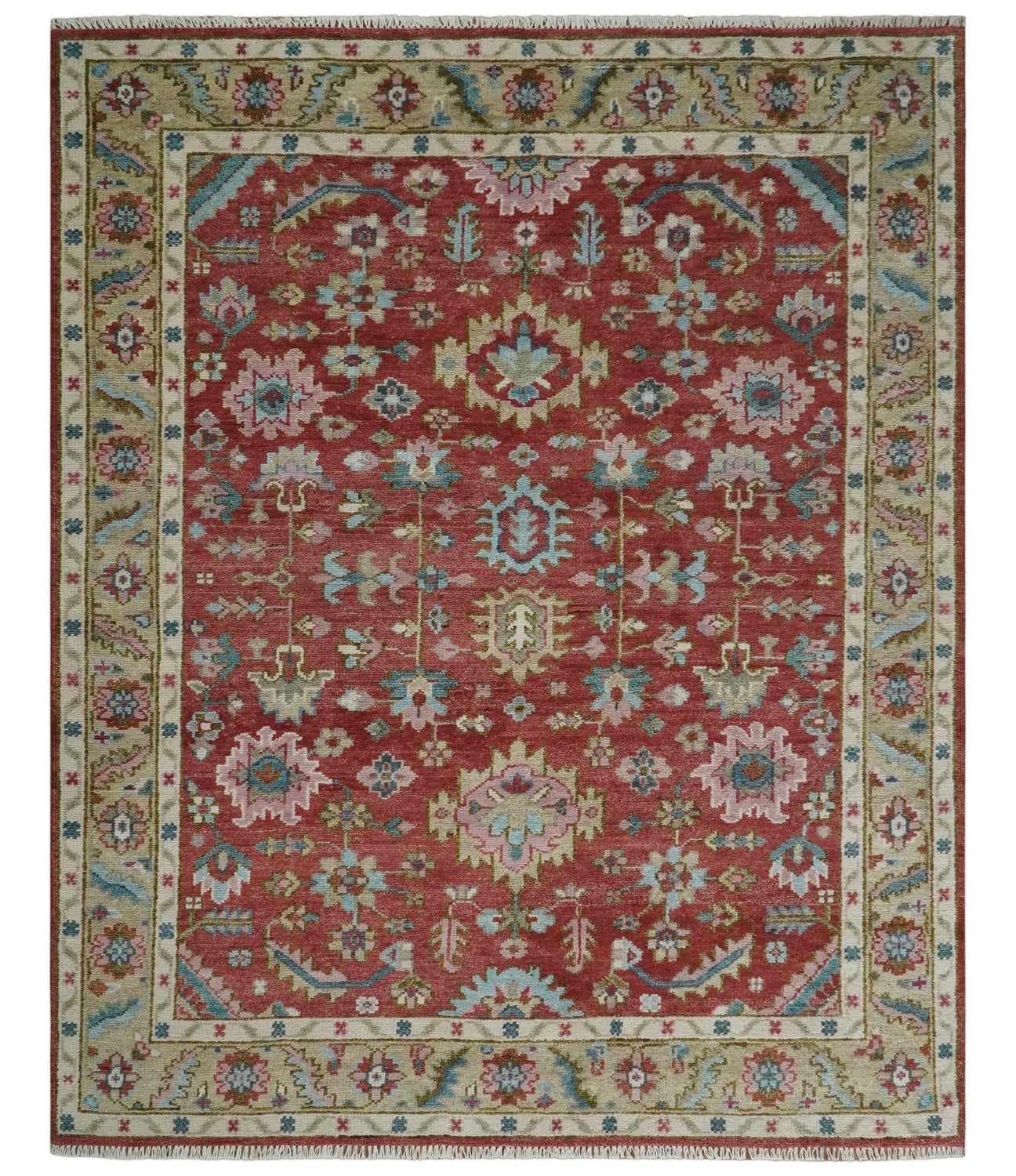 Custom Made Traditional Oushak Rust, Beige and Teal Hand knotted wool Area Rug