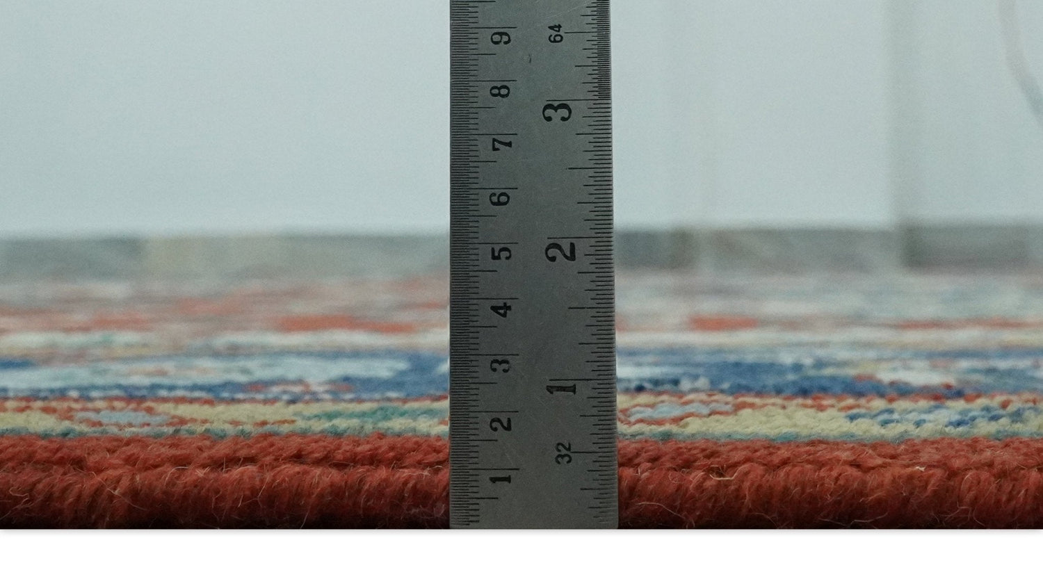This specific rug is made in India, in the city of Bhadohi. Bhadohi is one of the biggest rug manufacturing cities. Carpet weaving in the region dates back to the 16th century during the reign of Akbar. The skilled artisans of Bhadohi have been carrying the tradition of rug-making for centuries.