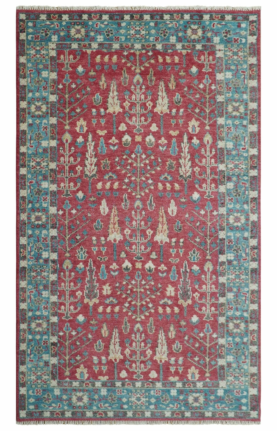 Custom Made Tree of Life Hand Knotted Maroon and Blue Traditional Wool area Rug