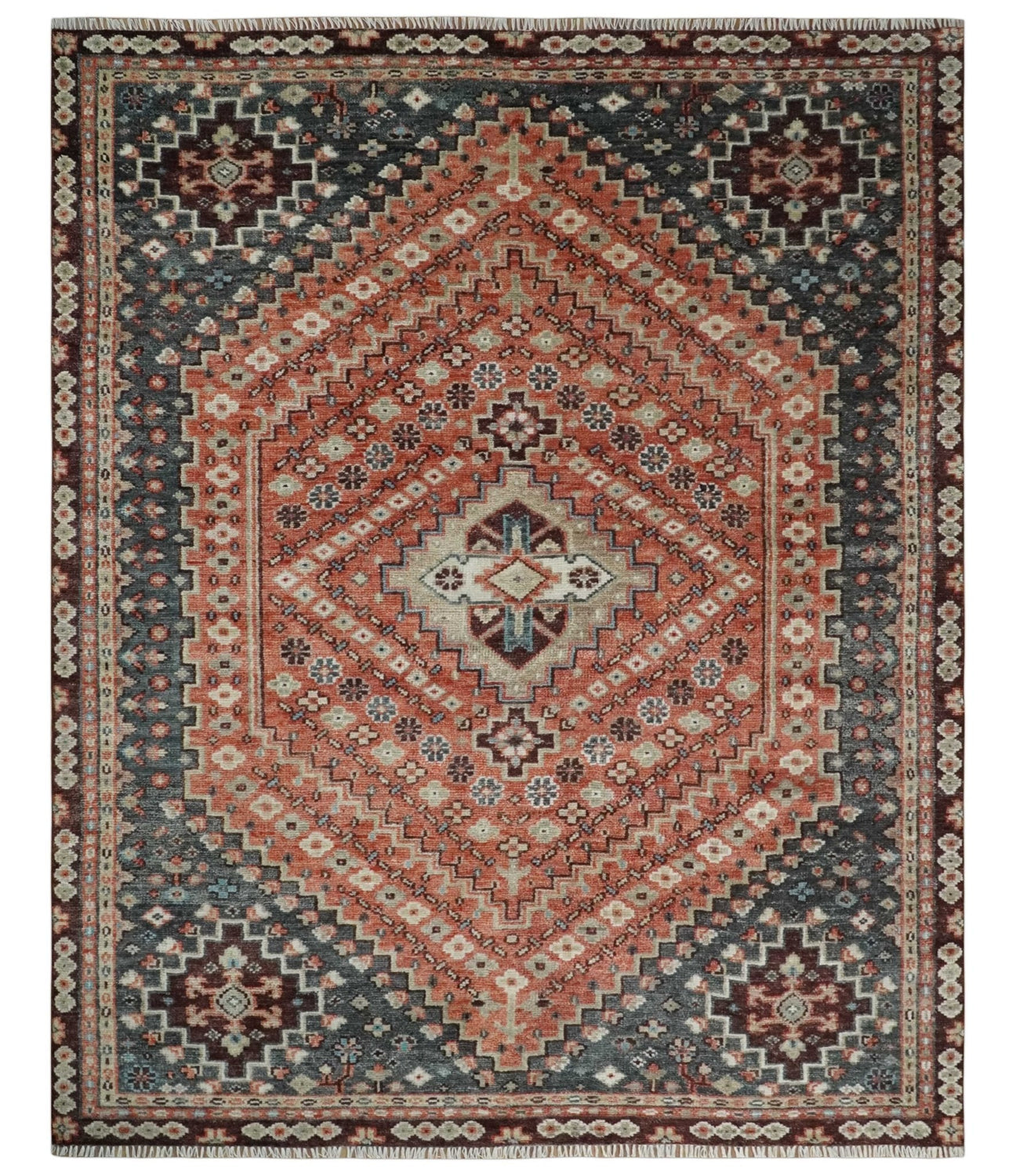Custom Made Turkish Style Rust and Charcoal Traditional Medallion Hand knotted wool Area Rug