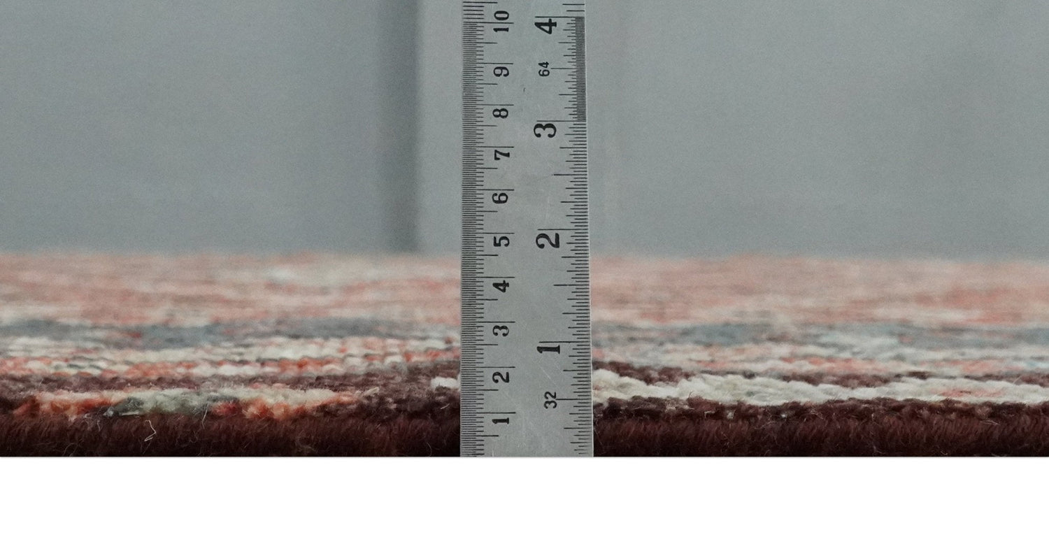 Experience craftsmanship and quality with this custom-made, hand-knotted wool rug. Featuring a traditional medallion design in rust and charcoal hues, this vintage-style rug adds a timeless touch to any space.