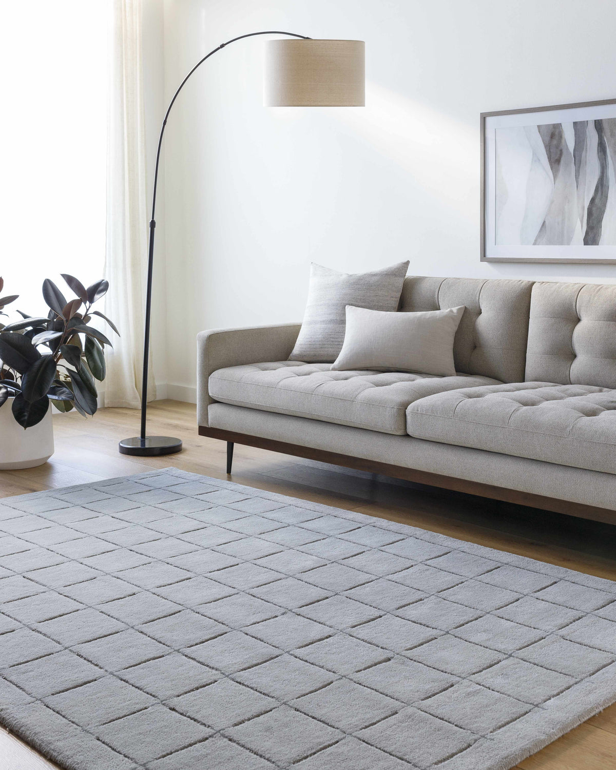 When selecting a living room rug, choose one that anchors your furniture by either placing all the legs on the rug or just the front legs, which helps define the seating area and enhances the room’s acoustics.