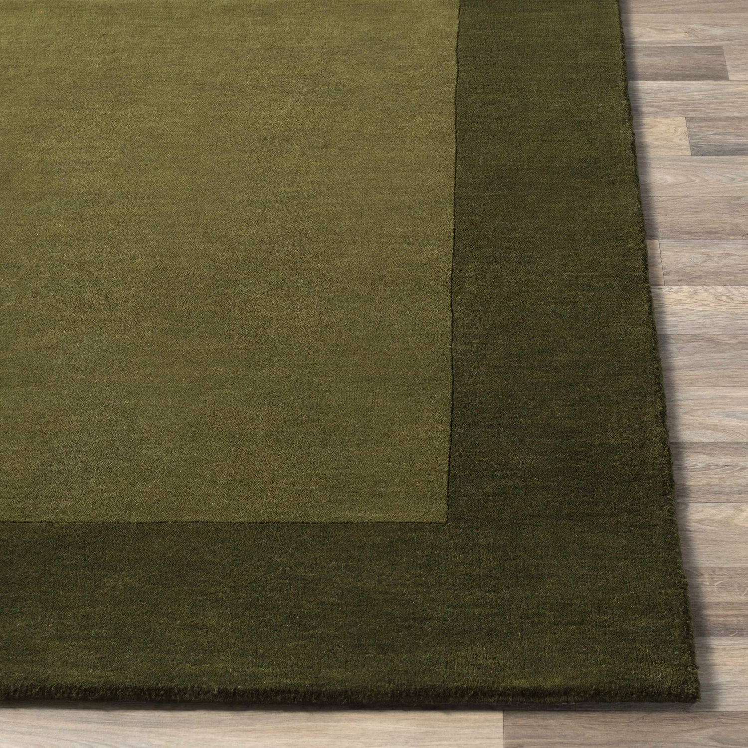 Introducing the Bordered Solid Olive Green Wool Area Rug, a modern style statement piece to bring your home decor to life. Hand loomed in India with high-quality wool and a high/low pile, this rug will add softness and texture to any room. Perfect for contemporary spaces, the Bordered Solid Olive Green Wool Rug is designed with durability in mind, so you can enjoy it for years to come. For best results, use with a rug pad (sold separately). Spot clean only.