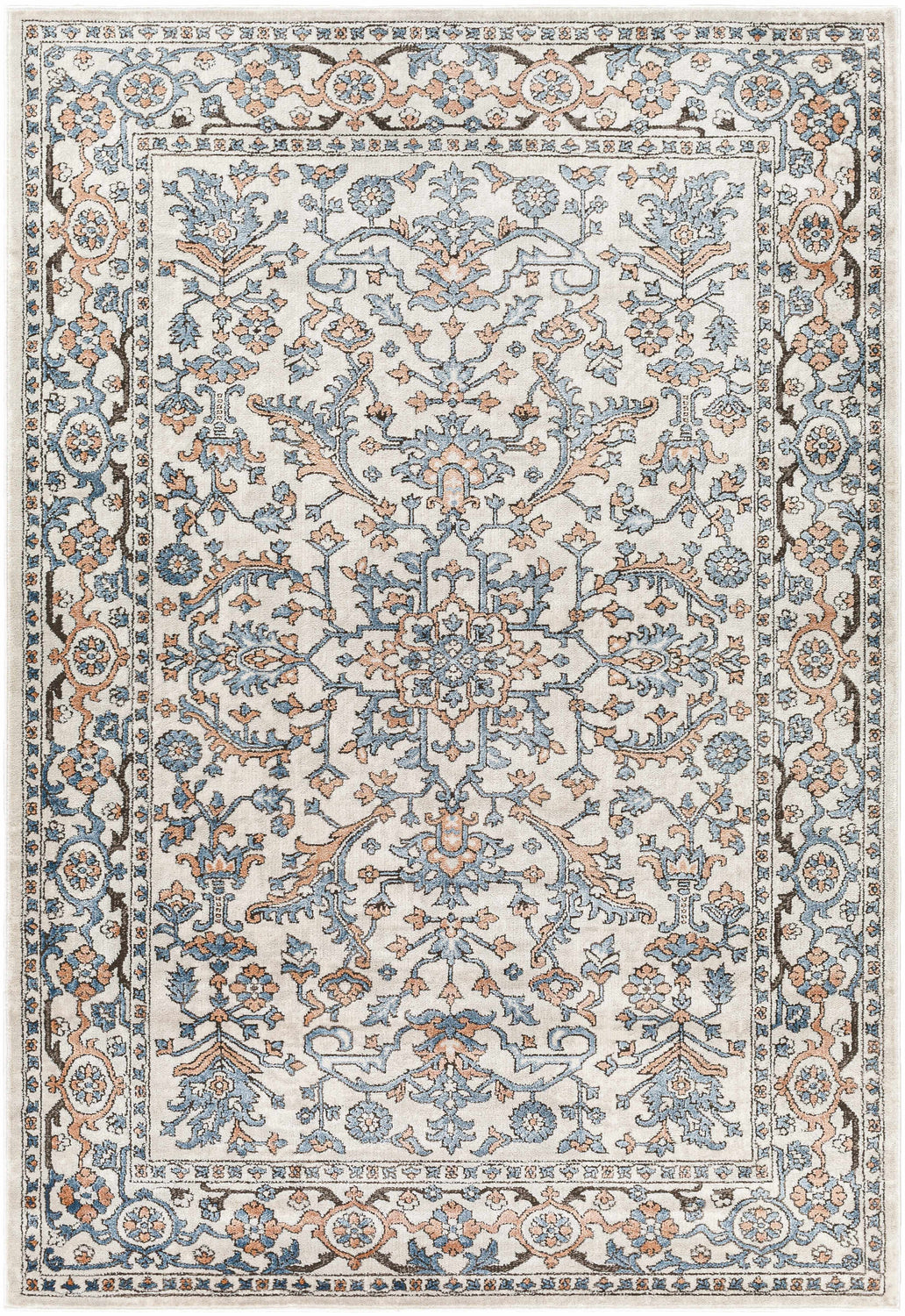 The Dagny Area Rug offers a traditional style that will elevate any space. Crafted from a durable blend of polypropylene and polyester, this machine-woven piece is designed to withstand high traffic areas while still looking beautiful. The medium pile height provides the perfect balance between comfort and easy maintenance. Plus, it's made in Turkey for superior quality. Add this timeless classic to your home today and enjoy years of comfort and style. For best results, use with a rug pad (not included).
