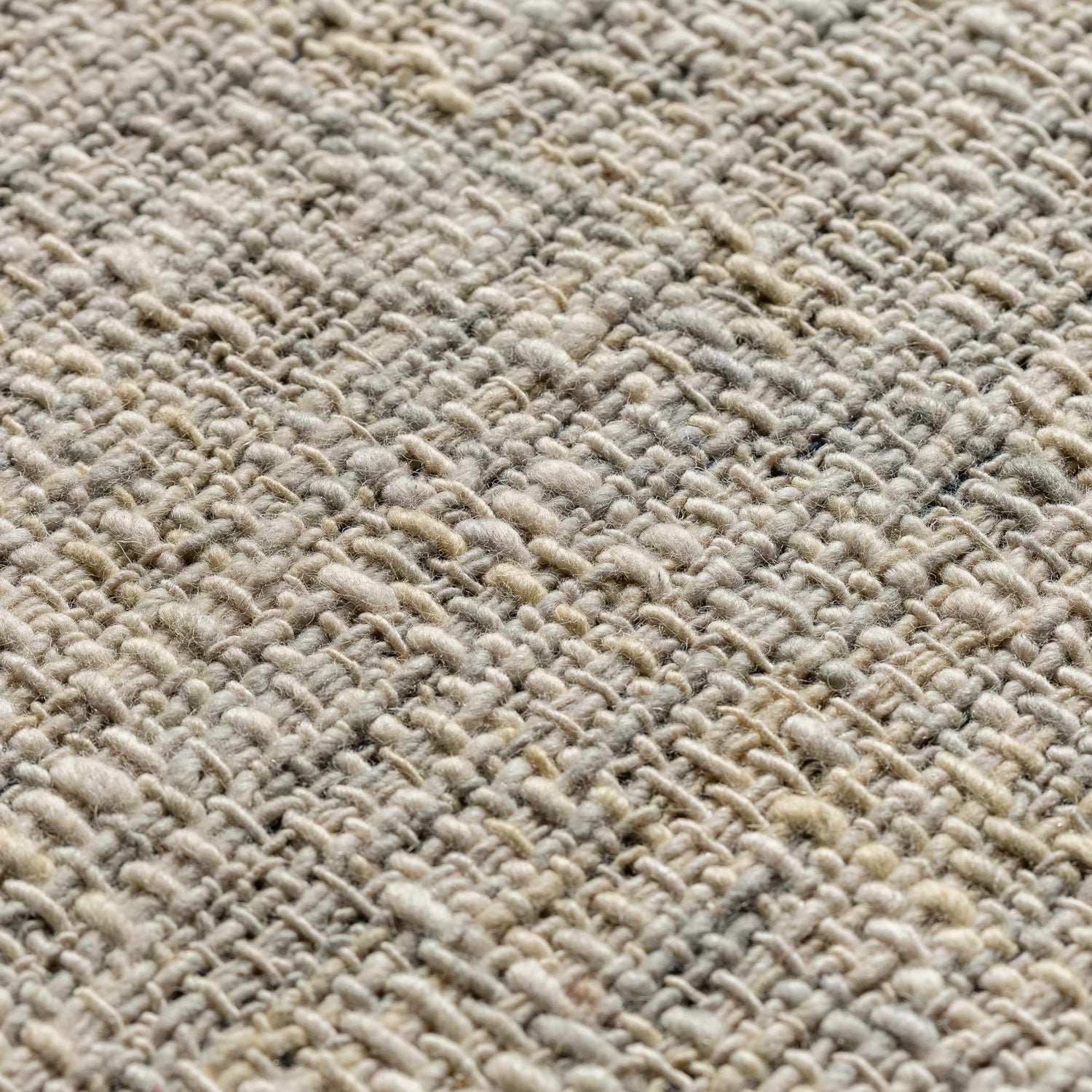 - Richly textured woven surface in ivory, beige, and soft gray