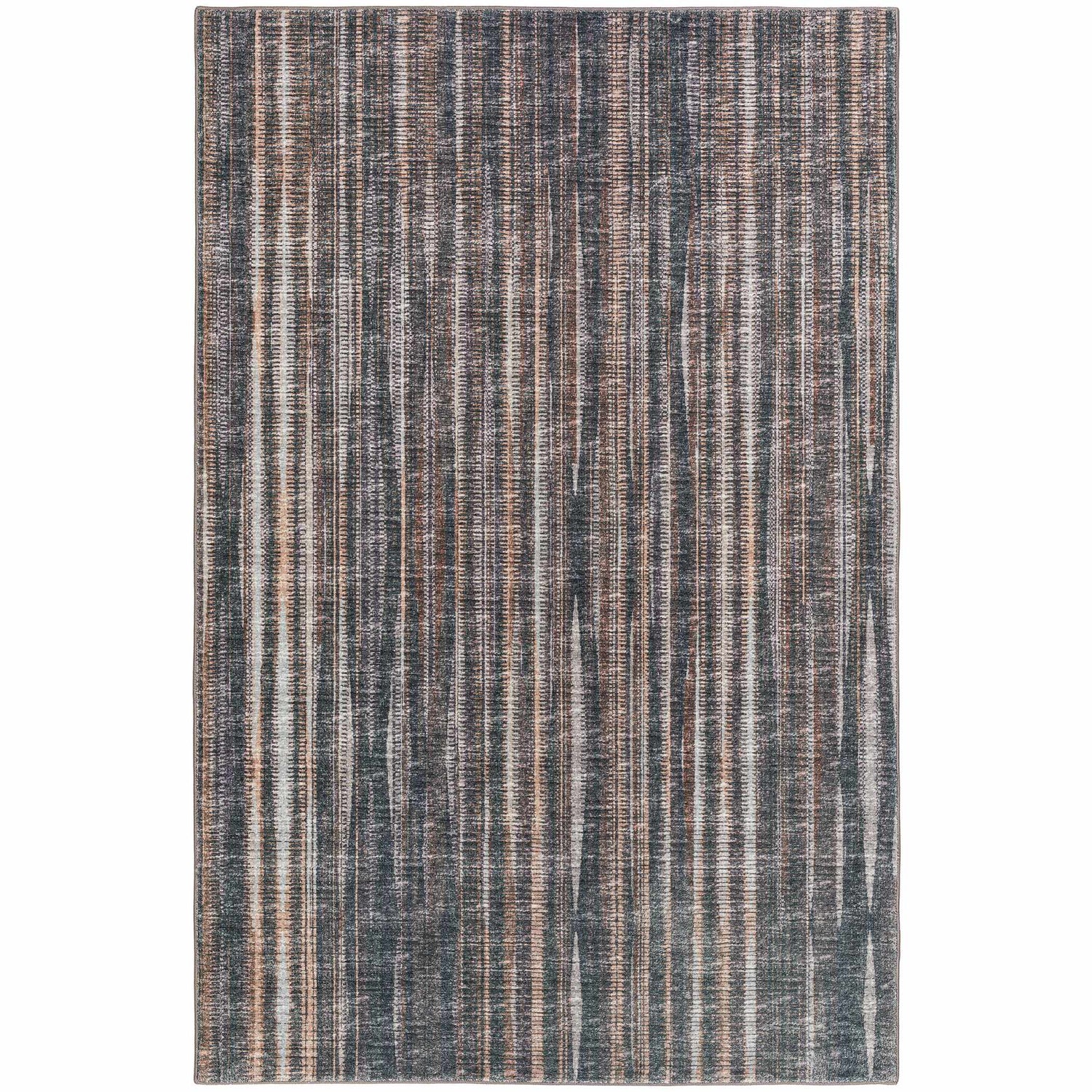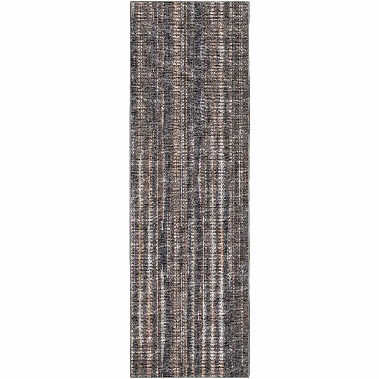 Earthy, distressed stripes in charcoal, brown, and tan — the Amador AA1 is rubber-backed, outdoor-safe, and tough enough for patios, porches, and busy entryways.