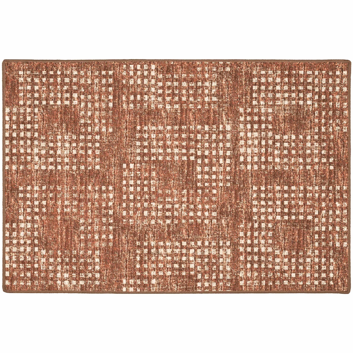 - Warm rust and cream distressed geometric grid pattern