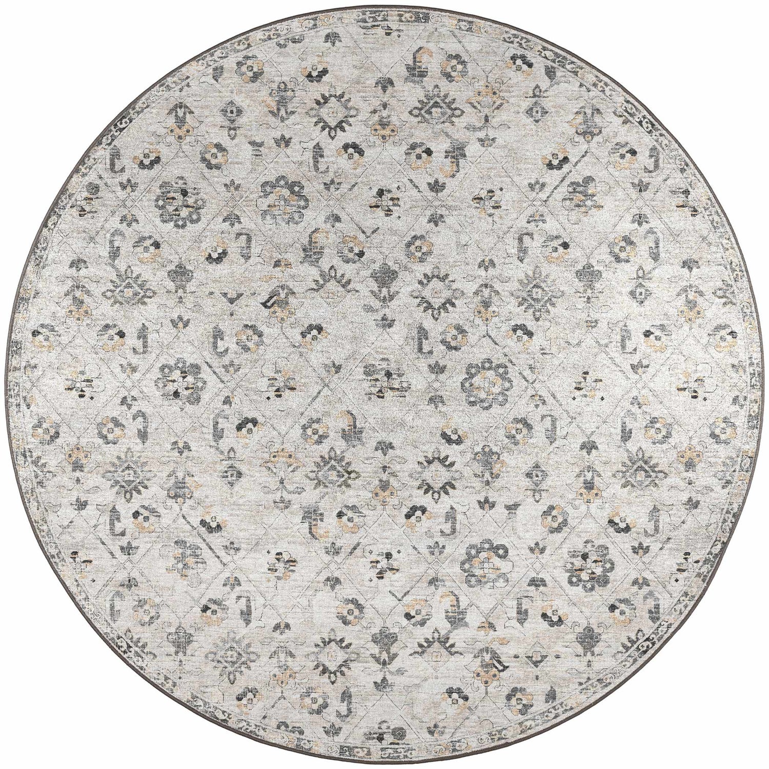 - Classic Persian lattice-floral pattern in warm beige and gray