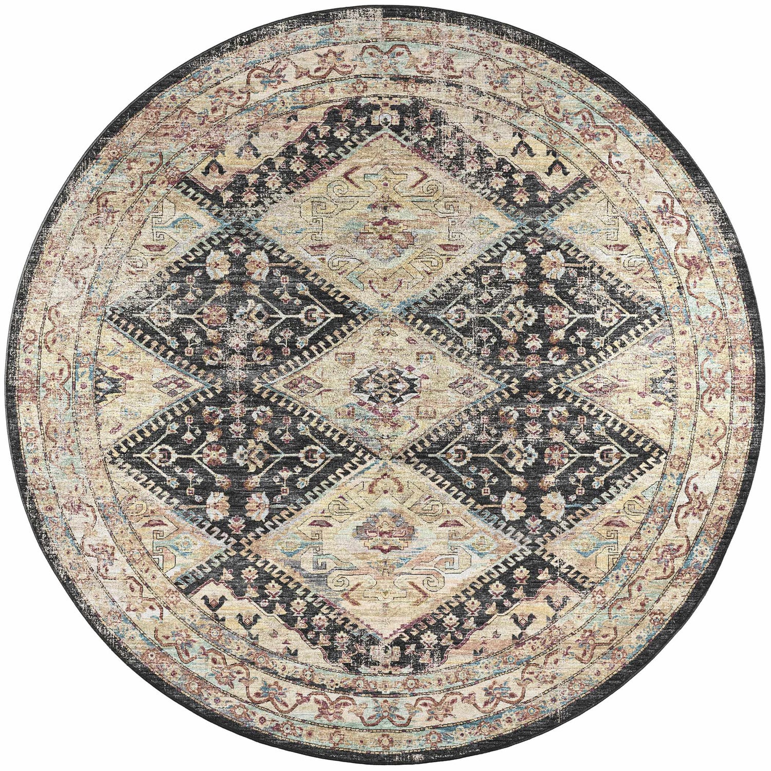 - Triple diamond medallion pattern in midnight black and warm multicolor
