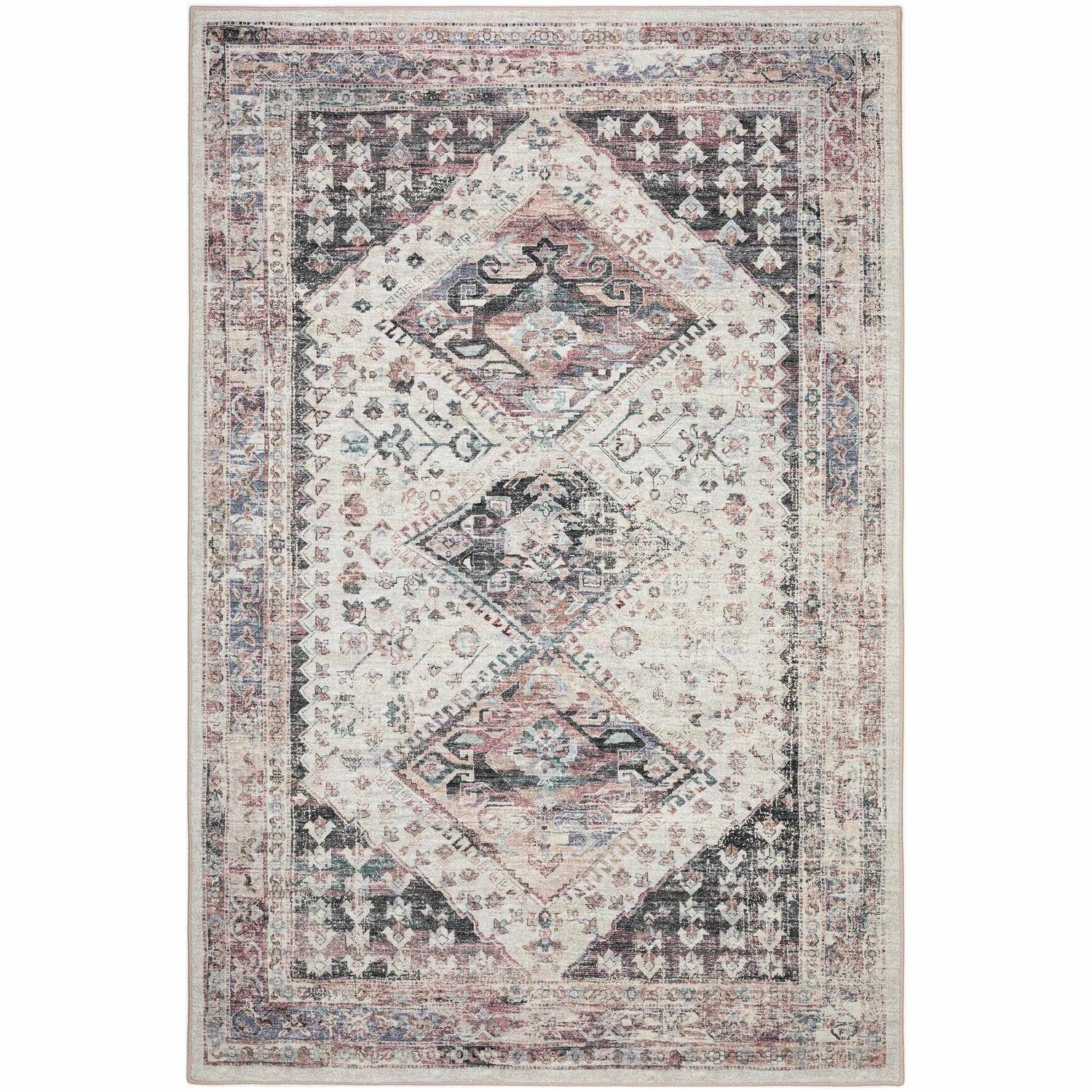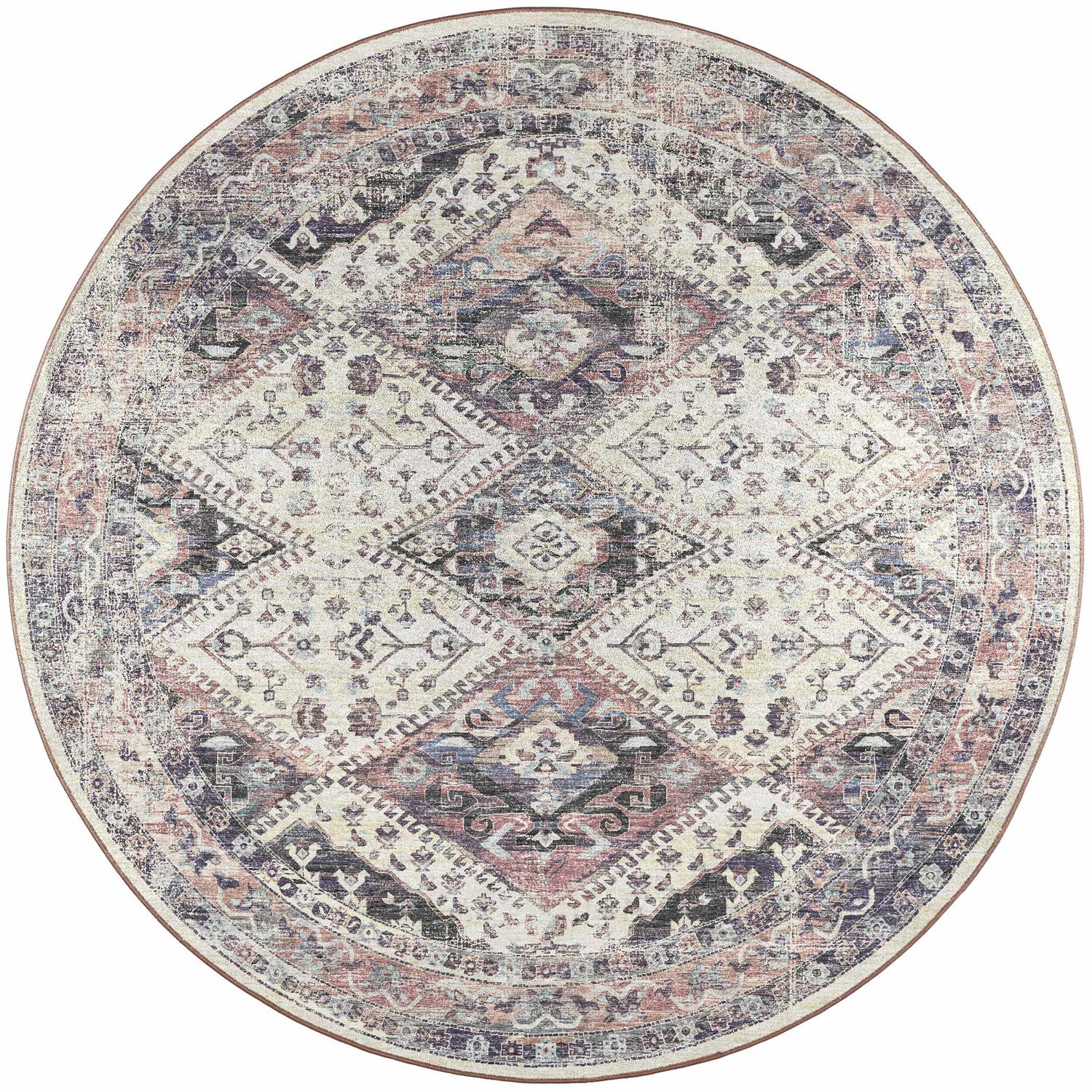 - Distressed vintage Persian medallion design with geometric diamond motifs