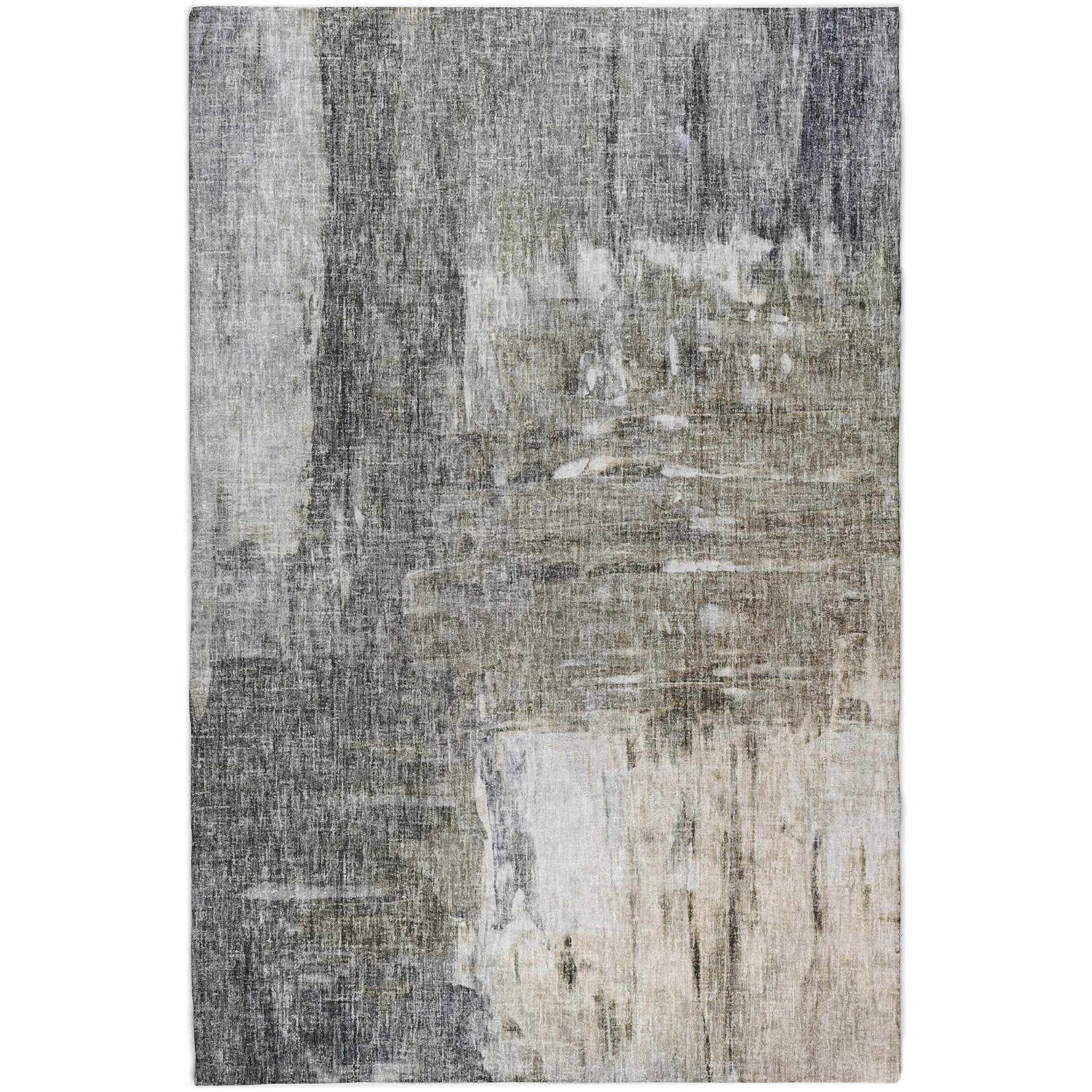 A plush, machine-washable abstract rug in layered grays and warm beige — looks like art, cleans like a dream. Rubber-backed and non-slip.