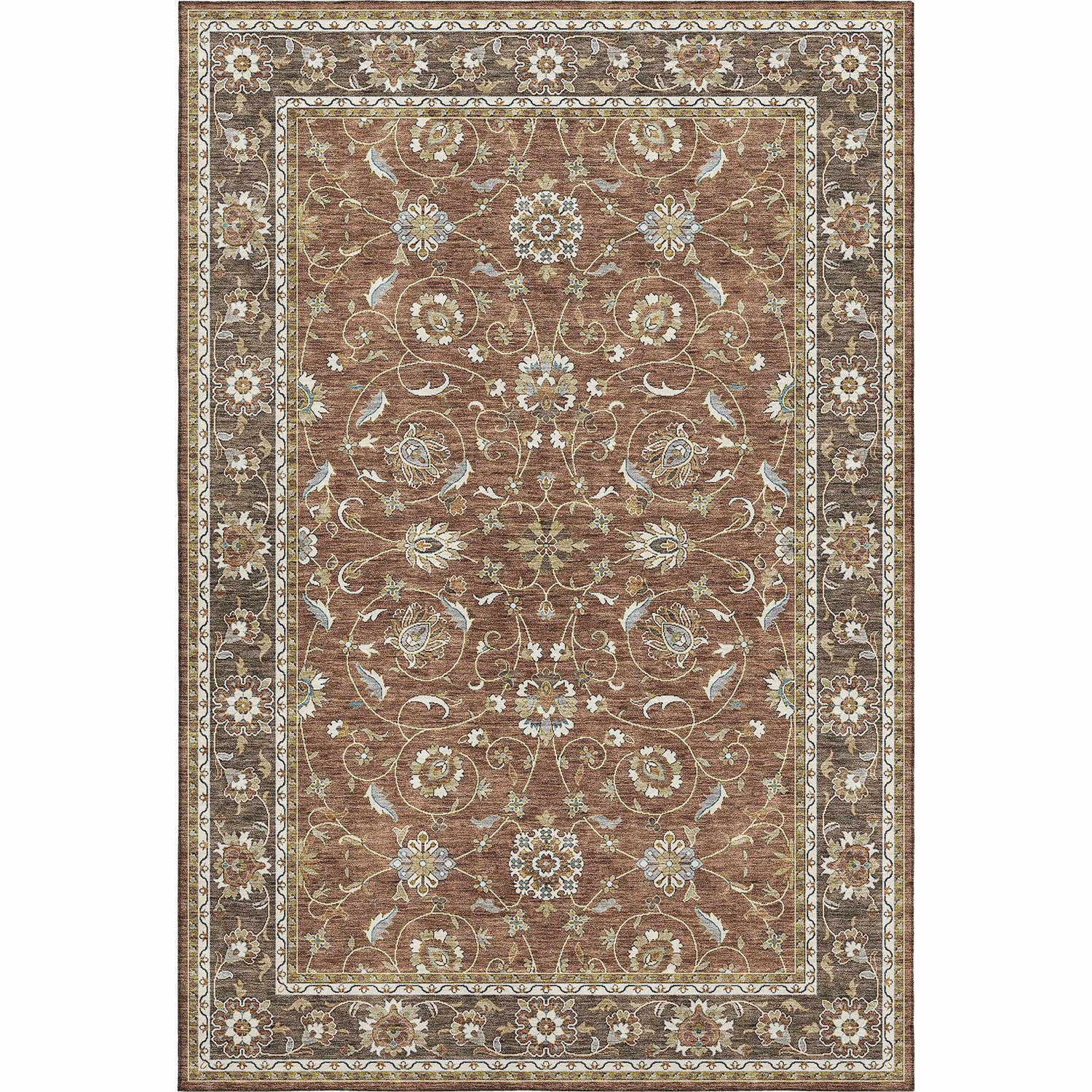 A classic Persian floral design in warm rust and brown — fully washable and outdoor-safe. The Dalyn Hatay brings timeless style to patios, porches, and busy living rooms.