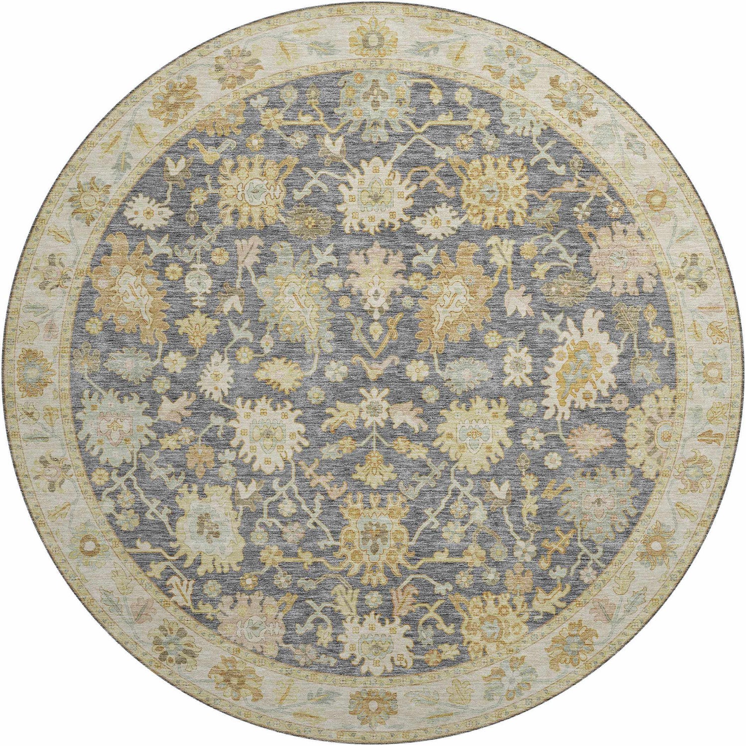 Classic Persian-inspired florals meet modern washability — the Hatay's slate gray field and cream border bring timeless elegance to any room, indoors or out.