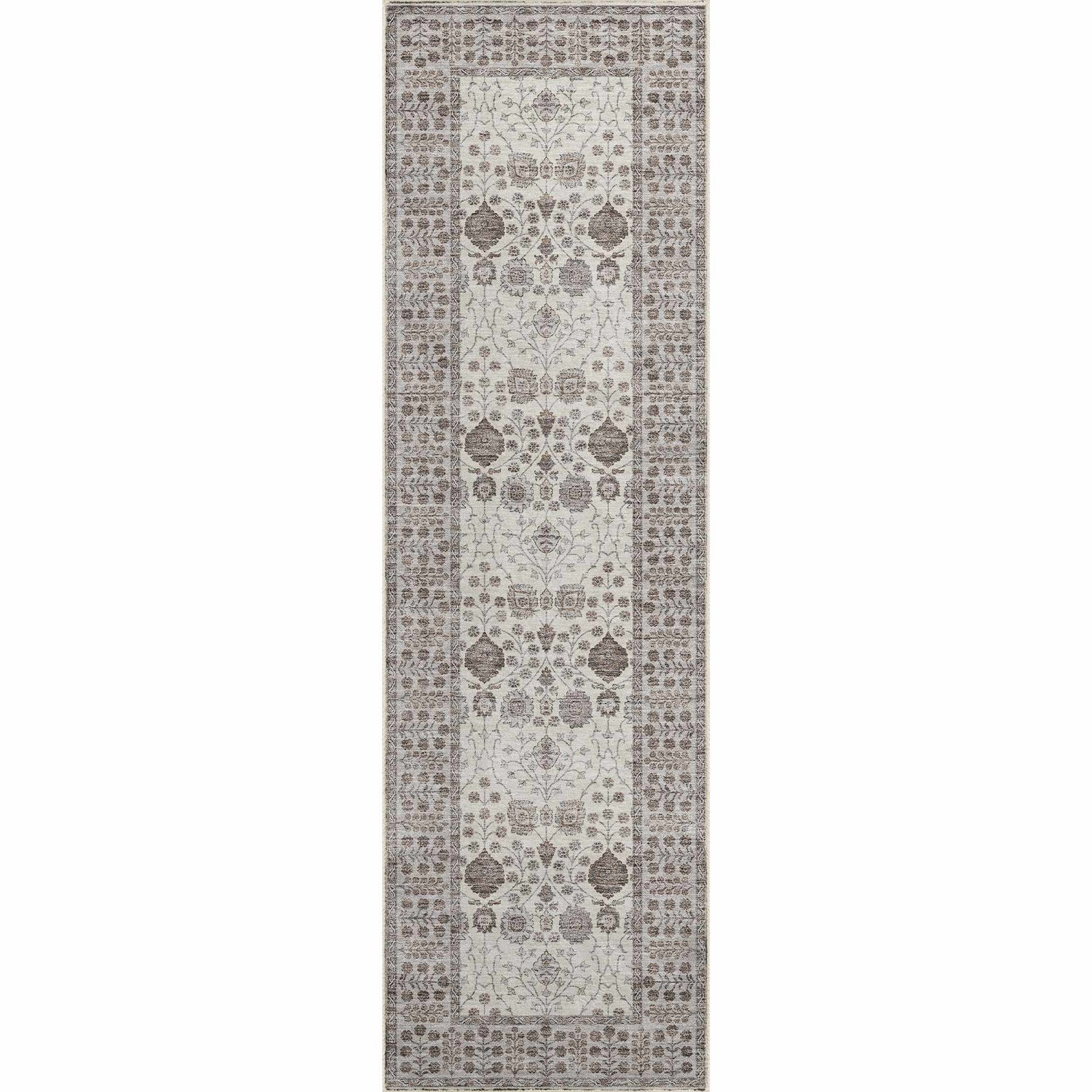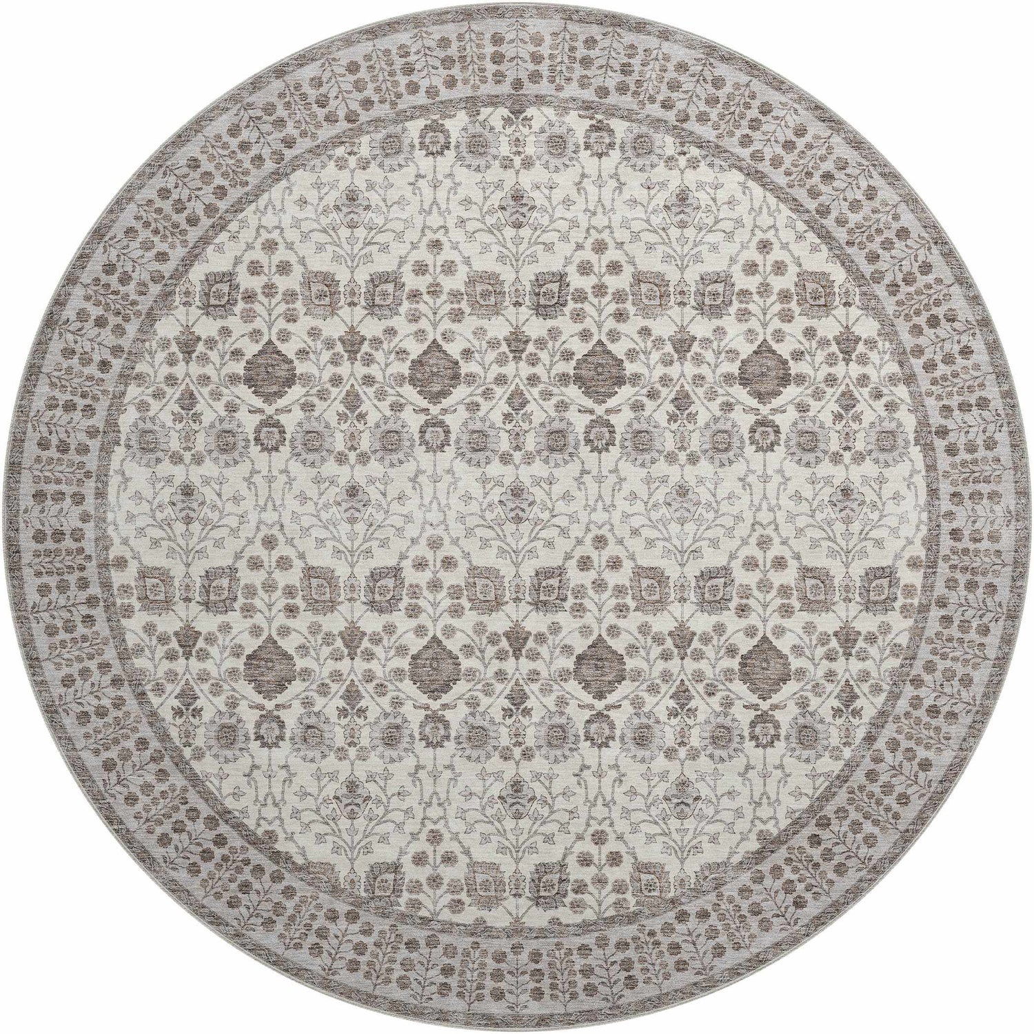 A classic ivory and gray floral rug with Persian-inspired detailing — fully washable and outdoor-safe, so it looks beautiful without the worry.