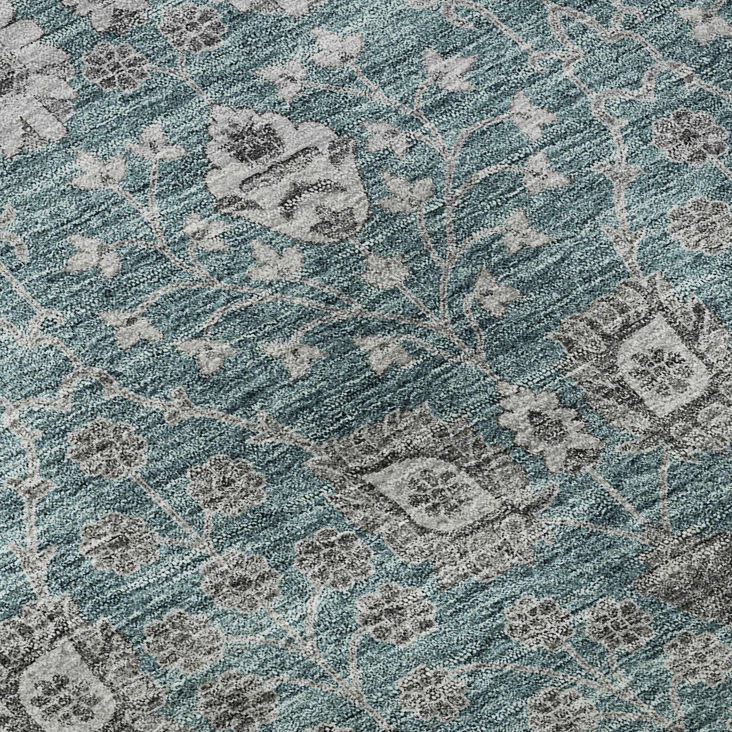 A teal Persian-inspired floral rug that's fully washable and outdoor-safe — gorgeous traditional style with zero-compromise practicality.