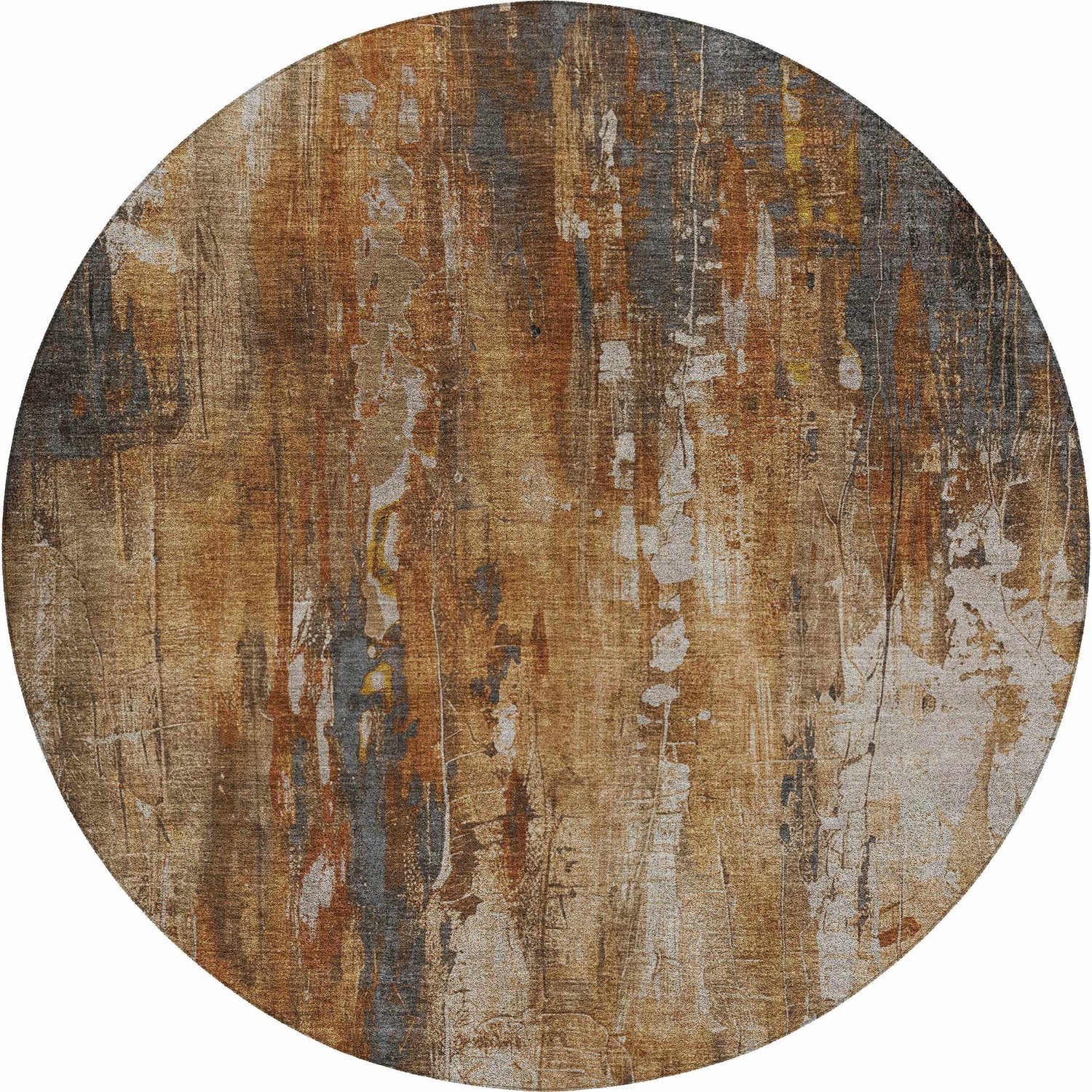 A painterly abstract in rust, brown, and gray — the Dalyn Kochi brings artist-canvas drama to patios, porches, and living rooms with durable, rubber-backed construction.