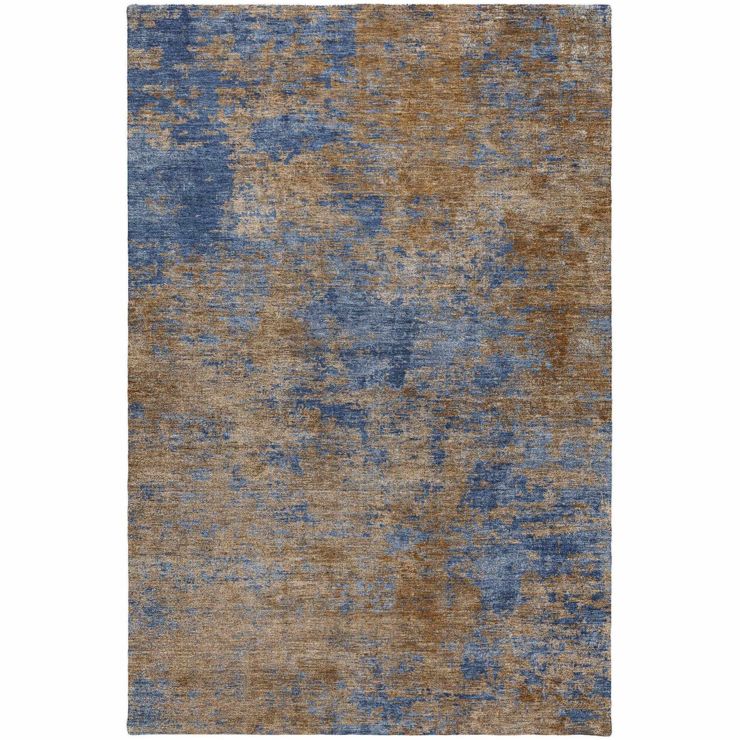 cool paletteWarm golden-brown and tan tones form the base of this rug, with bold washes of navy and medium blue sweeping across the surface in an organic, abstract pattern — the two palettes blend and bleed into each other like a watercolor painting, creating a rich, layered earth-tone feel with a cool blue accent.