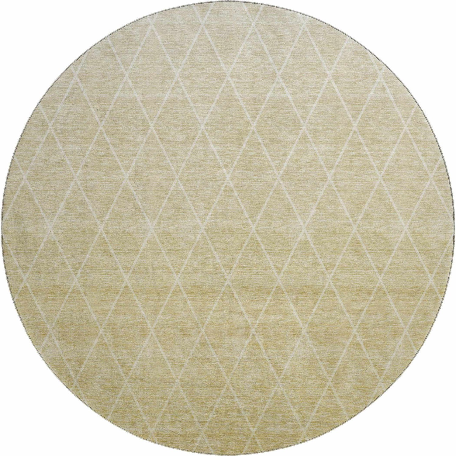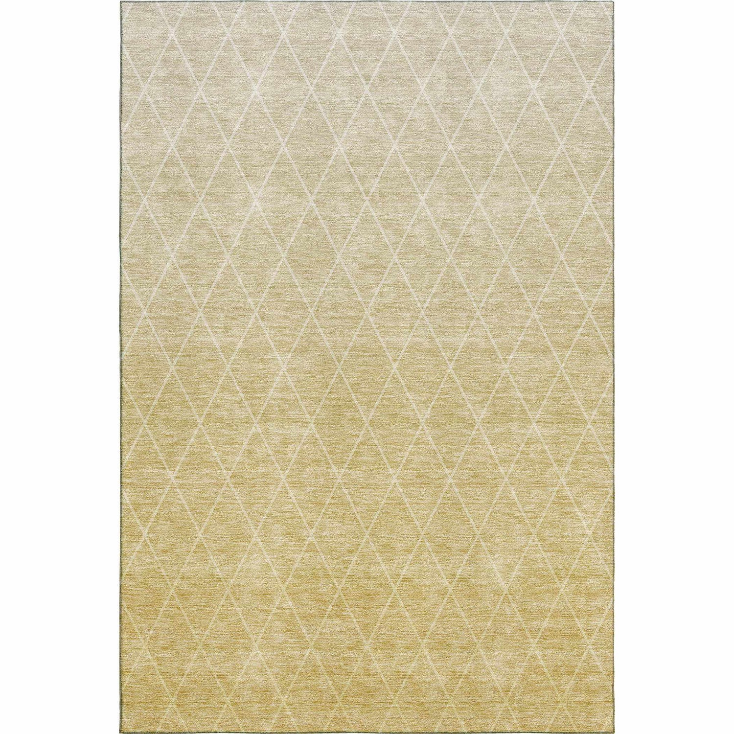 A golden wheat rug with a faded diamond trellis pattern that's fully washable and outdoor-safe — stylish enough for your living room, tough enough for your patio.