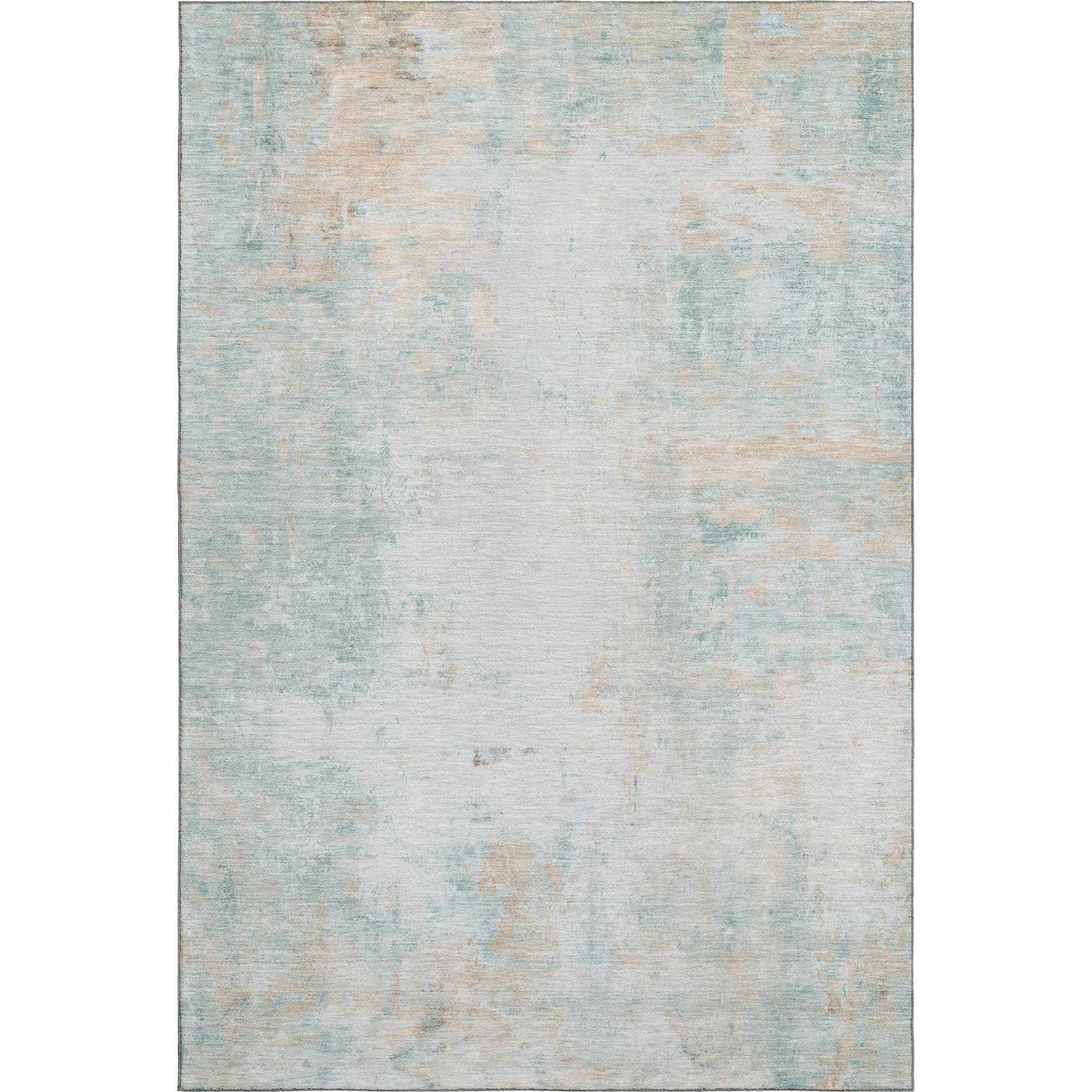 - Soft abstract distressed pattern in seafoam, gray, and beige