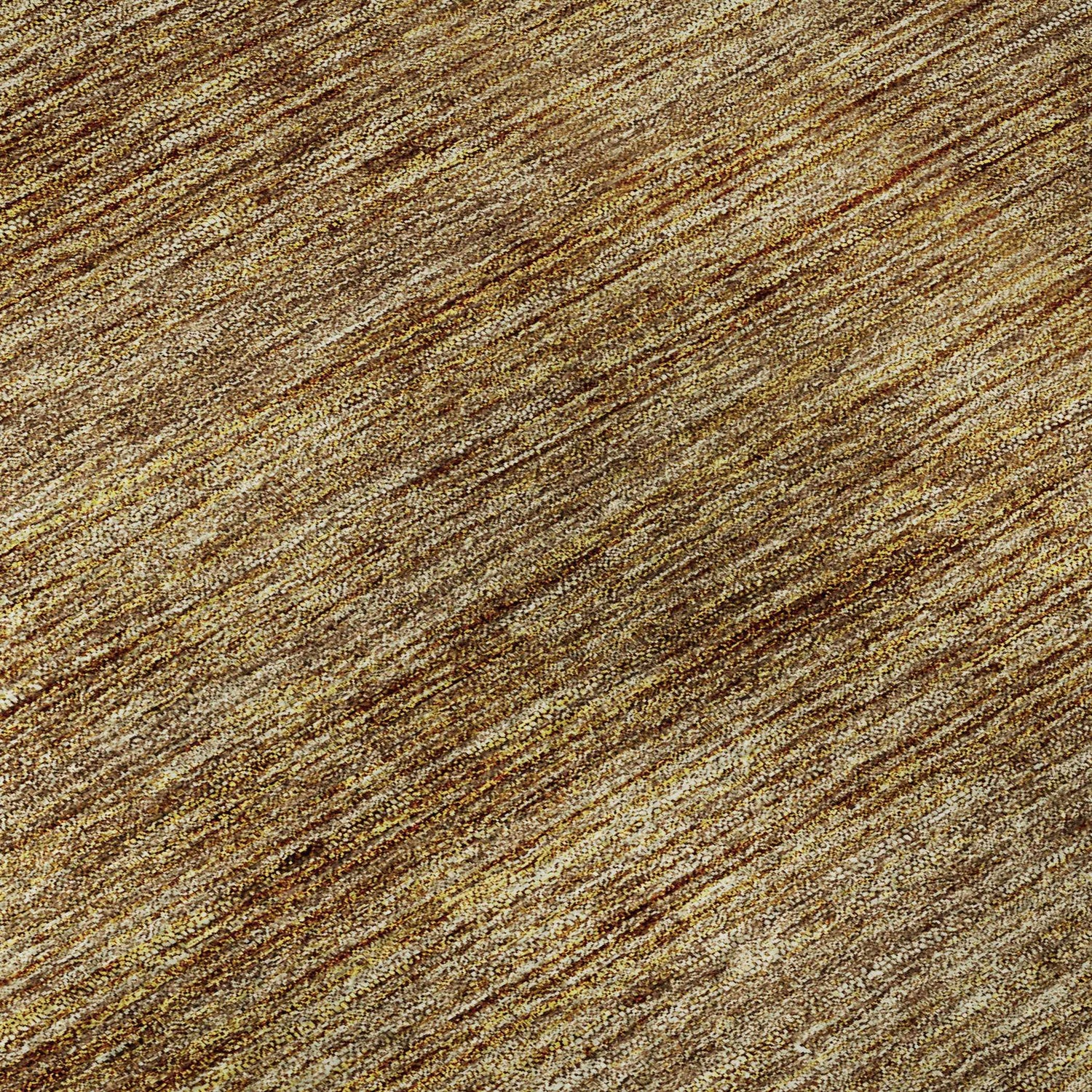 A rectangular medium-pile area rug with an allover abstract vertical streaking pattern — resembling natural wood grain or brushed textile fibers. The dominant color is a warm walnut brown, interwoven with golden yellow, amber rust, and sandy beige tones distributed evenly across the entire surface. The streaks run vertically from top to bottom with slight variation in density, creating a subtle ombre and distressed effect. The surface has a slightly textured, woven appearance with a smooth machine-made finish. Edges are cleanly bound with no fringe or tassels. The overall impression is warm, earthy, and quietly modern — like a sun-drenched natural fiber rug rendered in rich autumn tones.