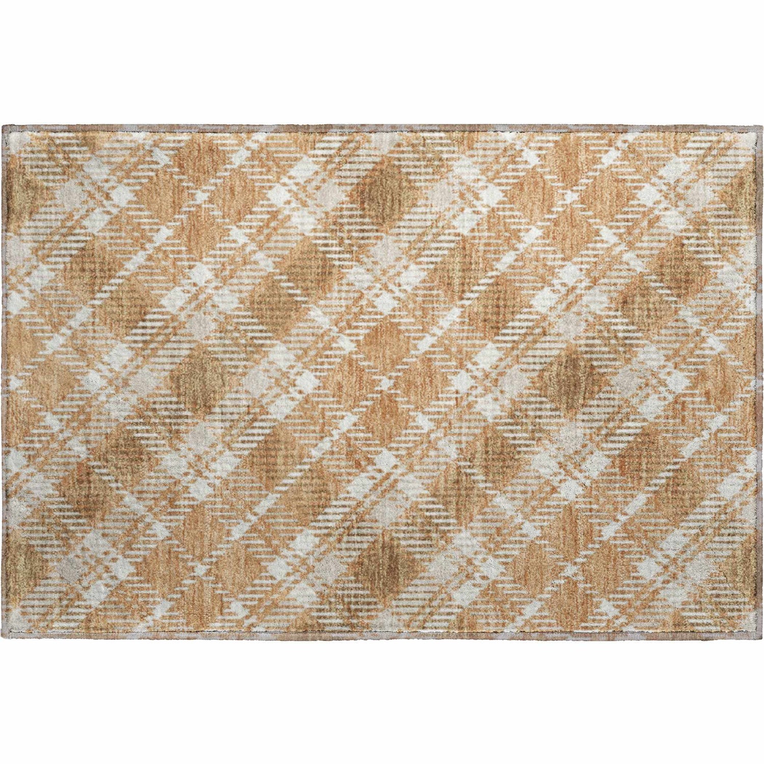 A warm tan and cream plaid rug that's fully washable and outdoor-safe — farmhouse style that actually handles real life, indoors or out.