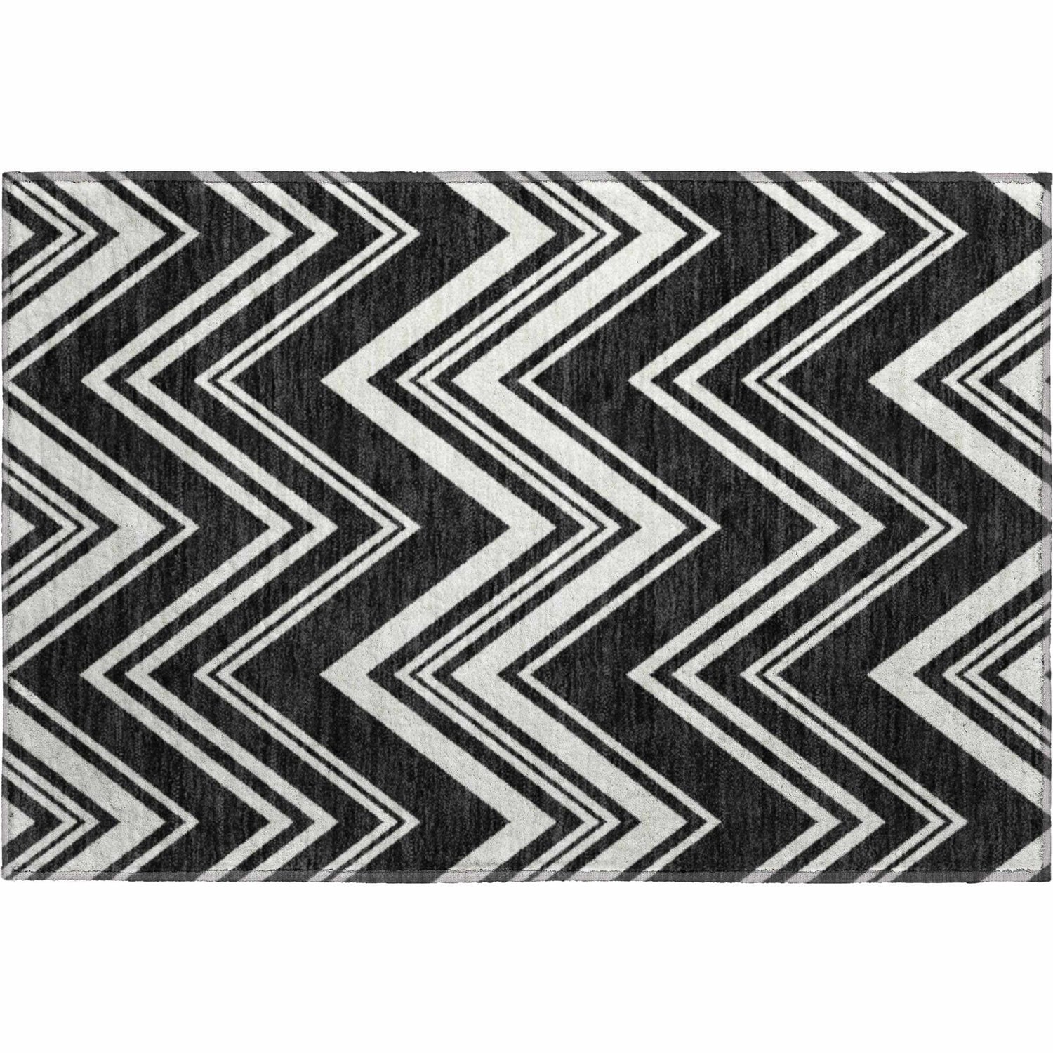 A bold, graphic black-and-white chevron rug that's fully machine washable and outdoor-safe — striking enough for a living room, tough enough for a patio.