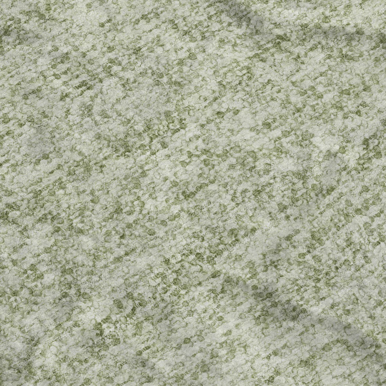 A rectangular area rug with an allover abstract mottled pattern in soft sage green and creamy off-white. The green tones vary from light celery to a slightly deeper moss, distributed in an irregular, watercolor-like wash across a cream base — creating a faded, organic texture with no hard edges or defined motifs. The surface has a visible high pile texture with a slightly plush, velvety appearance. Edges are cleanly bound with no fringe or tassels. The overall impression is of a softly distressed, tone-on-tone green abstract rug with a calm, contemporary feel.