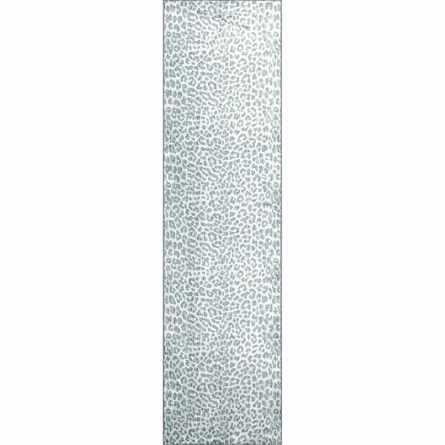 A plush, machine washable leopard print rug in cool gray and white — bold enough to be a statement piece, practical enough for everyday life.