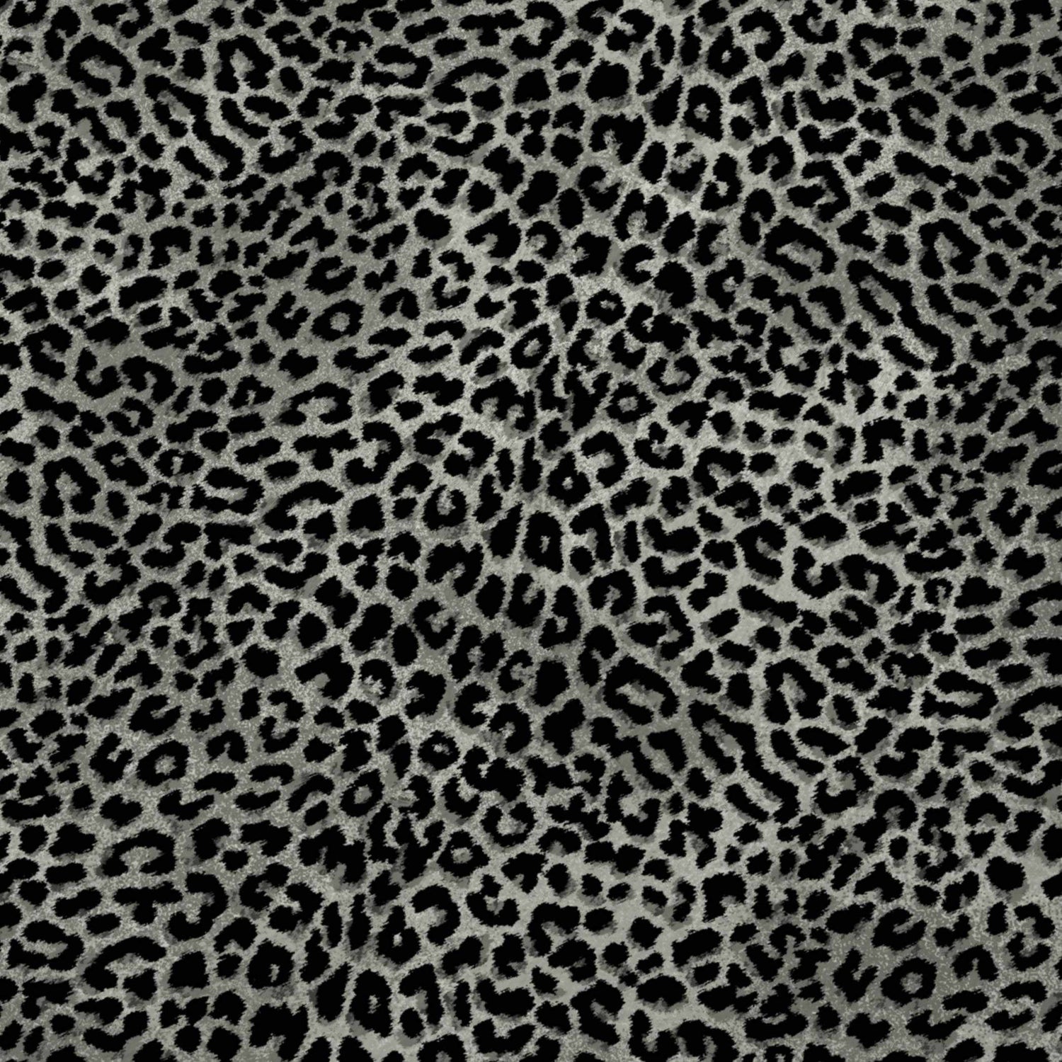 cool paletteDeep black dominates the leopard rosette spots and border, layered over a cool silver-gray base that gives the pattern a moody, sophisticated contrast — less jungle, more editorial.