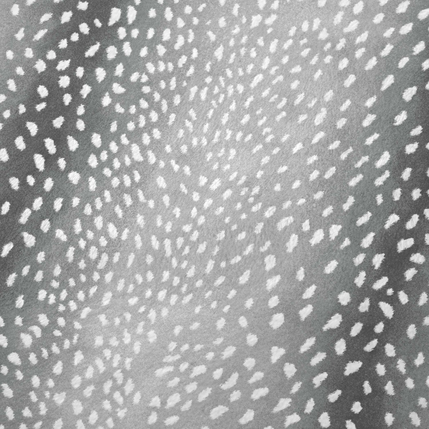 cool paletteA cool, misty gray dominates the entire field, with scattered irregular white spots that drift across the surface like snowflakes or a fawn's markings — the overall palette feels calm, soft, and effortlessly neutral.