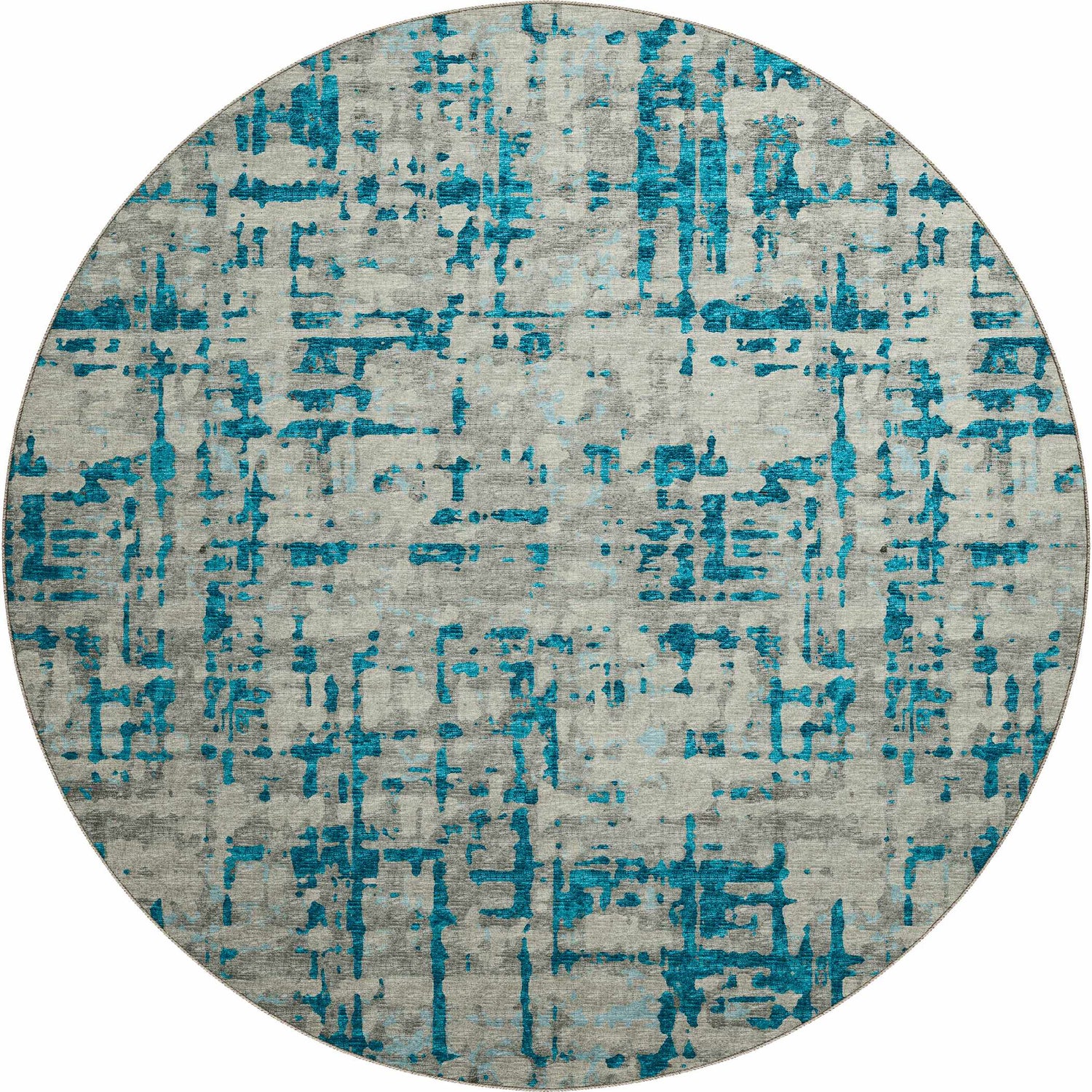 A bold teal-and-gray abstract that's machine washable, outdoor-safe, and rubber-backed — the Brisbane is the rare rug that looks like art and survives real life.
