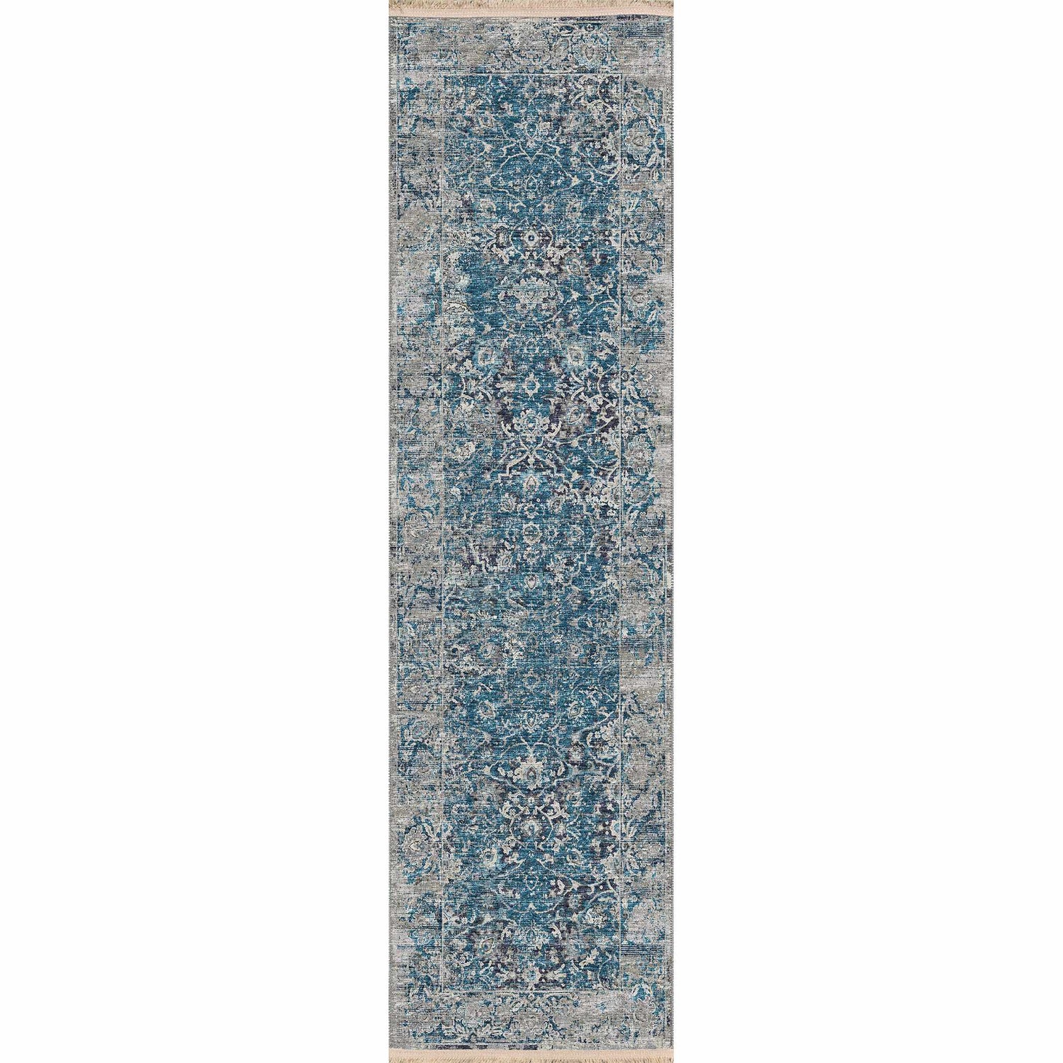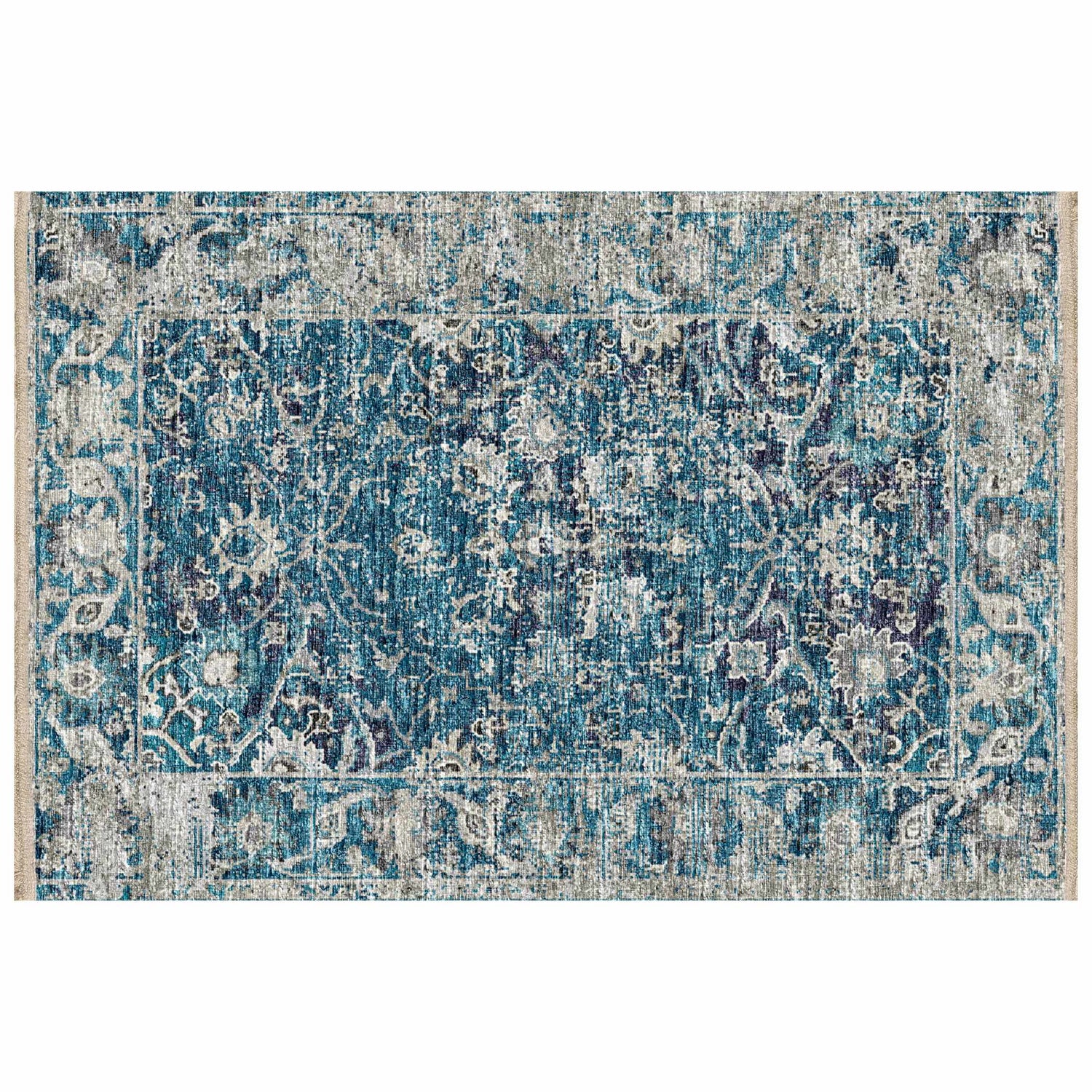 • Distressed Persian floral pattern in rich teal and navy