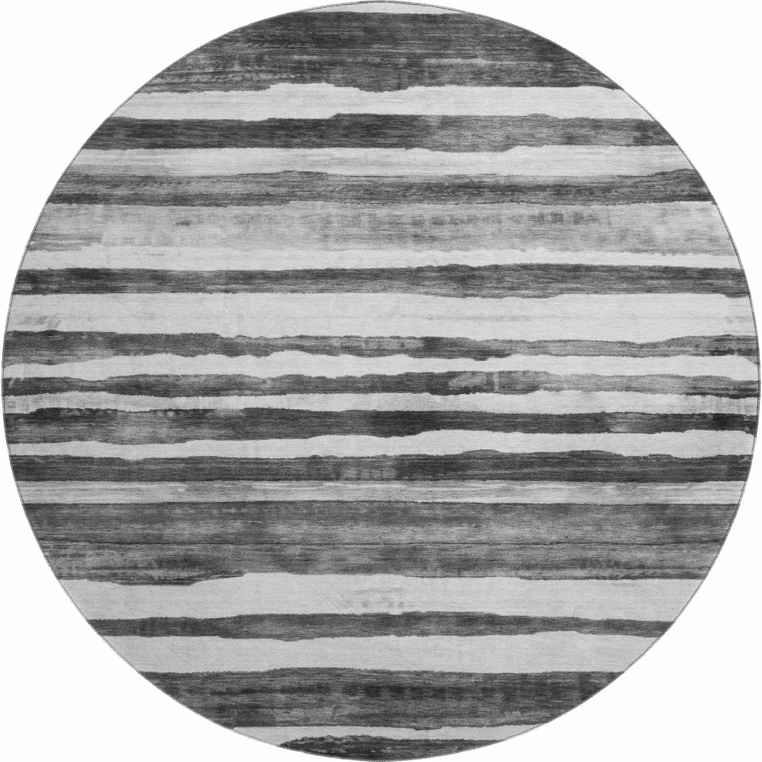 Bold watercolor stripes in charcoal and gray meet real-life durability — this Dalyn Neo is machine washable, outdoor-safe, and non-slip backed.